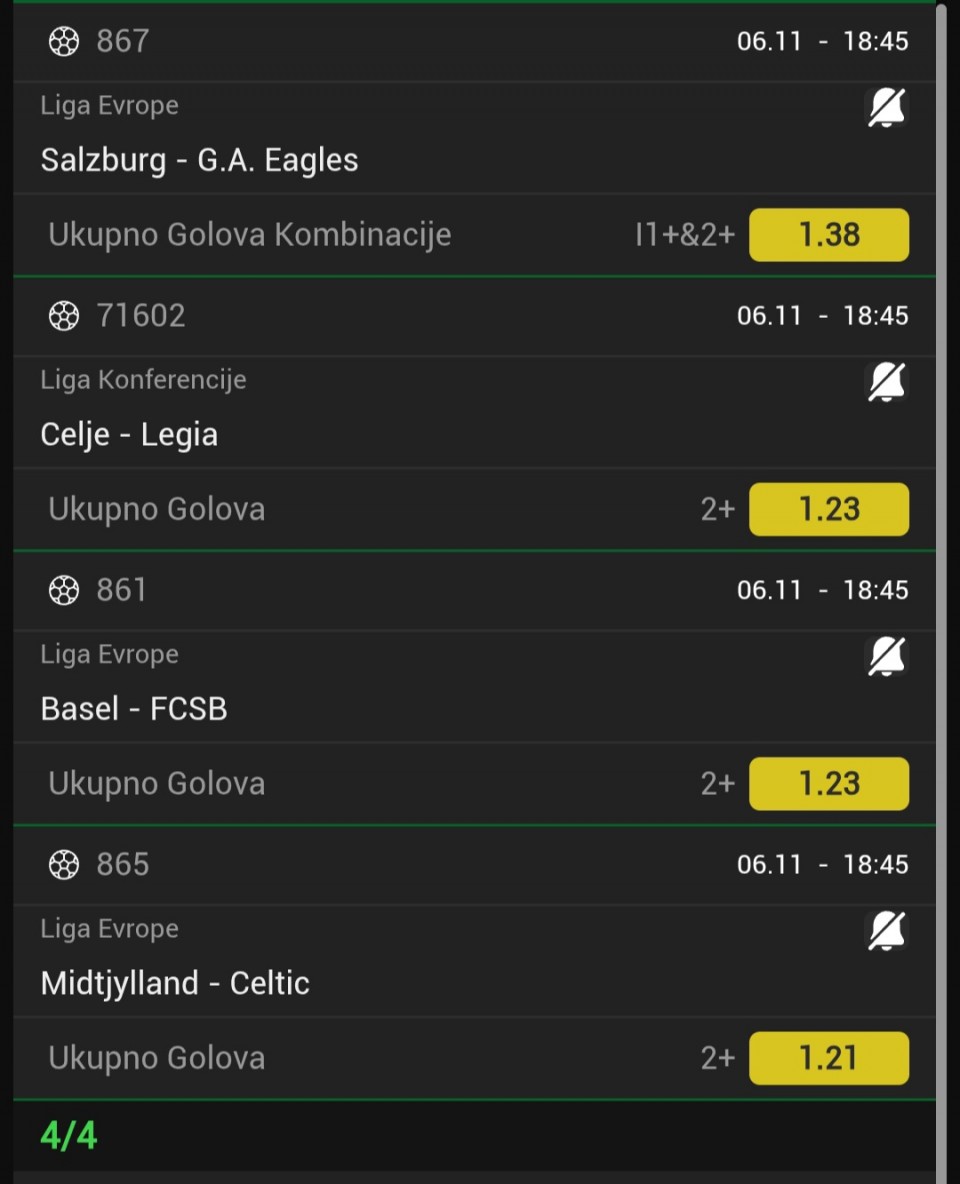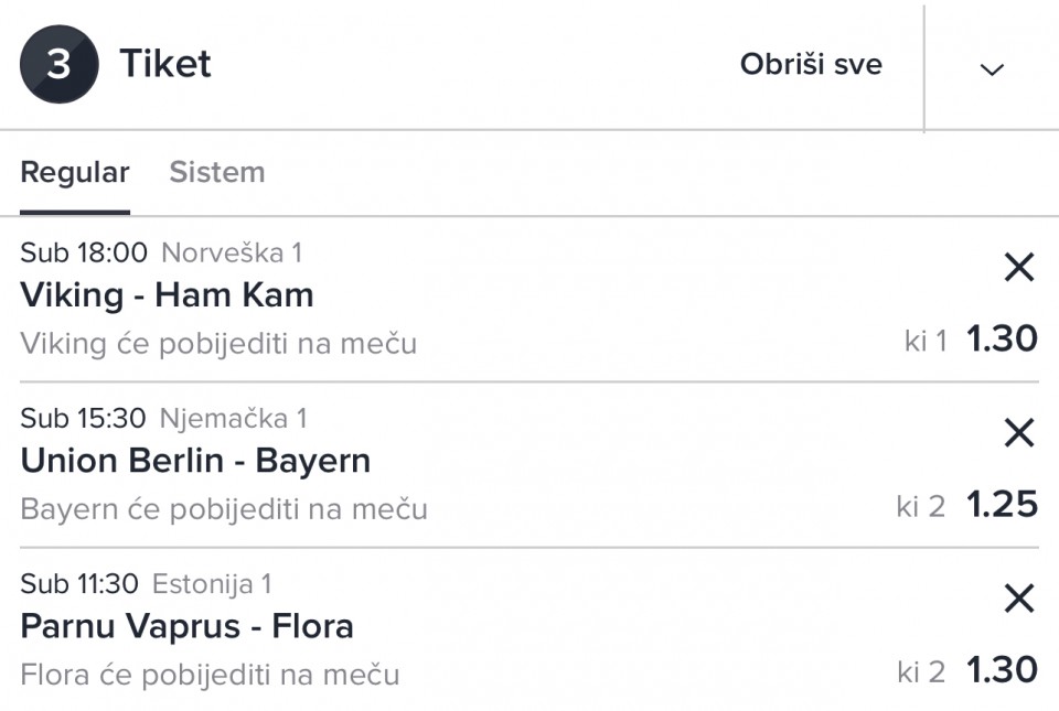 Tiket koji mislim da bi trebao bez ikakvih problema da prodje , postavljam ga sad jer ocekujem pad kvota u naredna dva dana.