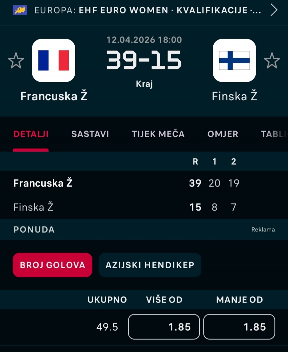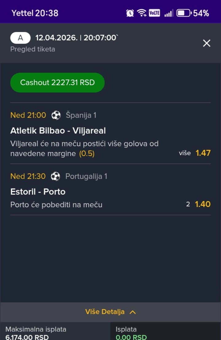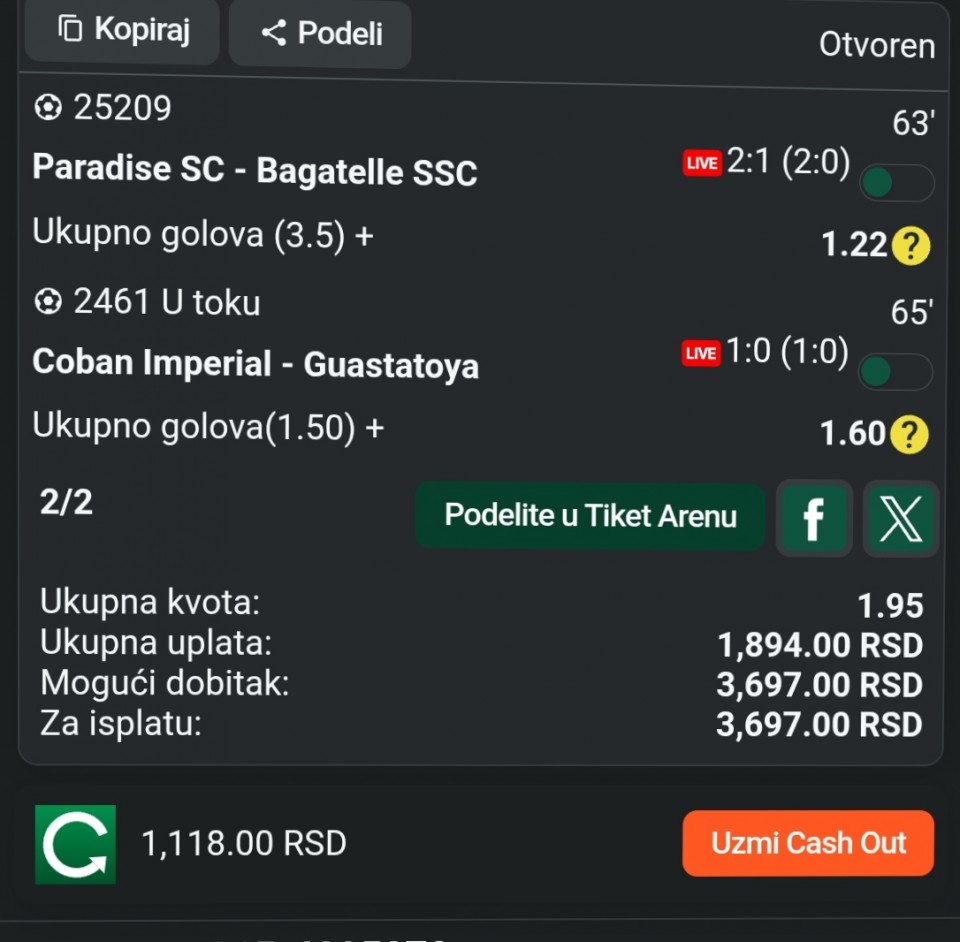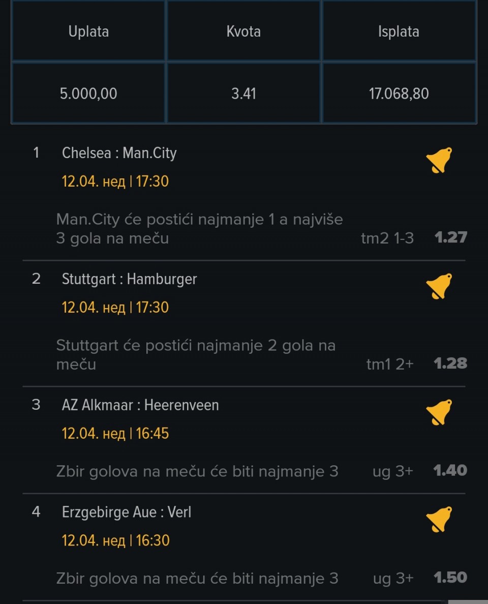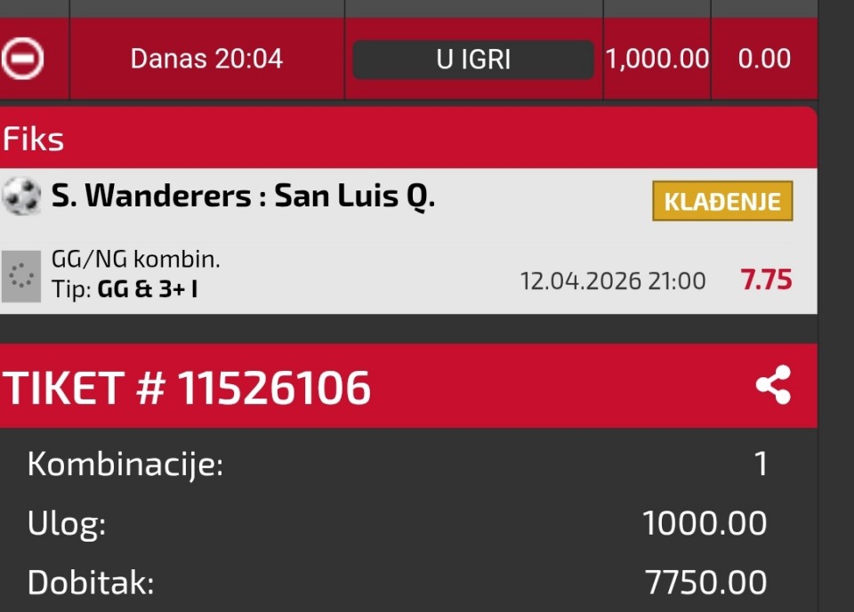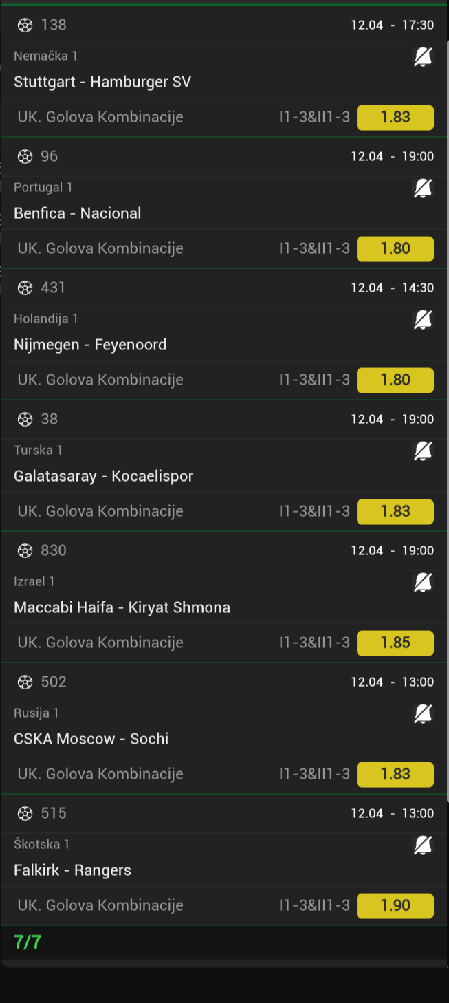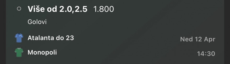 Serija 3+ golova se nastavilja u Frajburgu. Mislio sam da je pad. Na sofascore i na Aiscore stoji 0:1 90+10. Odjednom izbaci ft 4:1. Krivo mi bilo sto nisam odigrao i prelaz jer je bio jedan. Posle na 0:1 sam video da nije bilo u ponudi. Ceka se...Serija 3+ golova se nastavilja u Frajburgu. Mislio sam da je pad. Na sofascore i na Aiscore stoji 0:1 90+10. Odjednom izbaci ft 4:1. Krivo mi bilo sto nisam odigrao i prelaz jer je bio jedan. Posle na 0:1 sam video da nije bilo u ponudi. Ceka se jos jedan par na triplu. Sanse male za prolaz jer je 0:0 ht. Cekam još dva gola. Kasnije izbacujem još jedan singl koji mi je jako interesantan kao ovaj. Show more