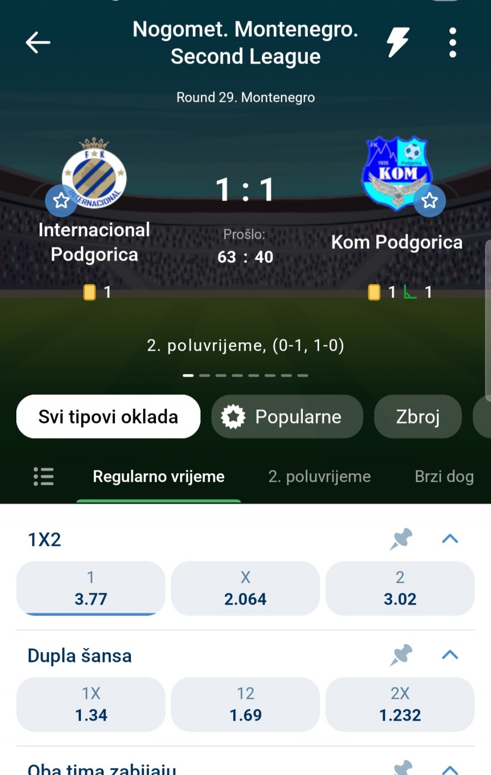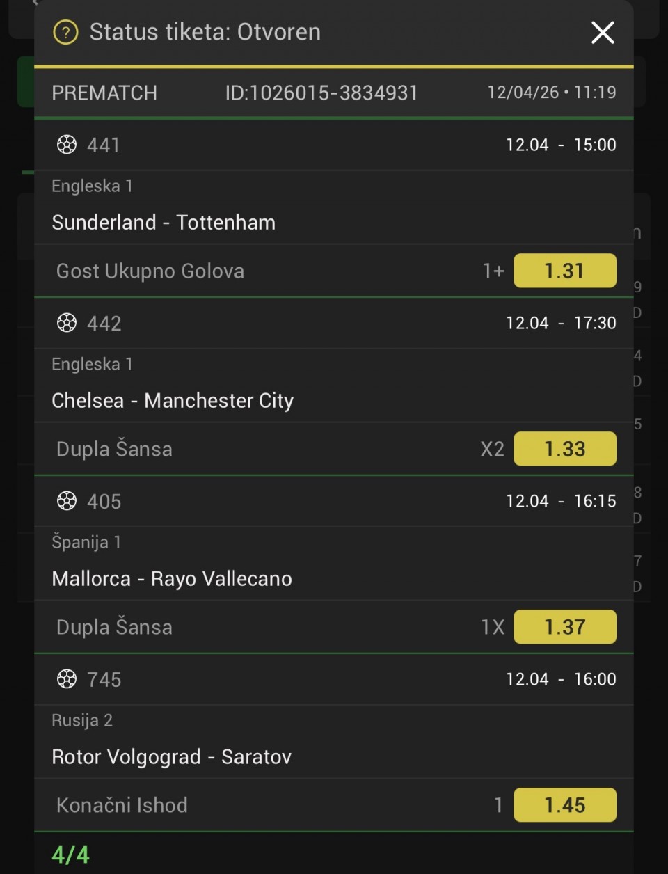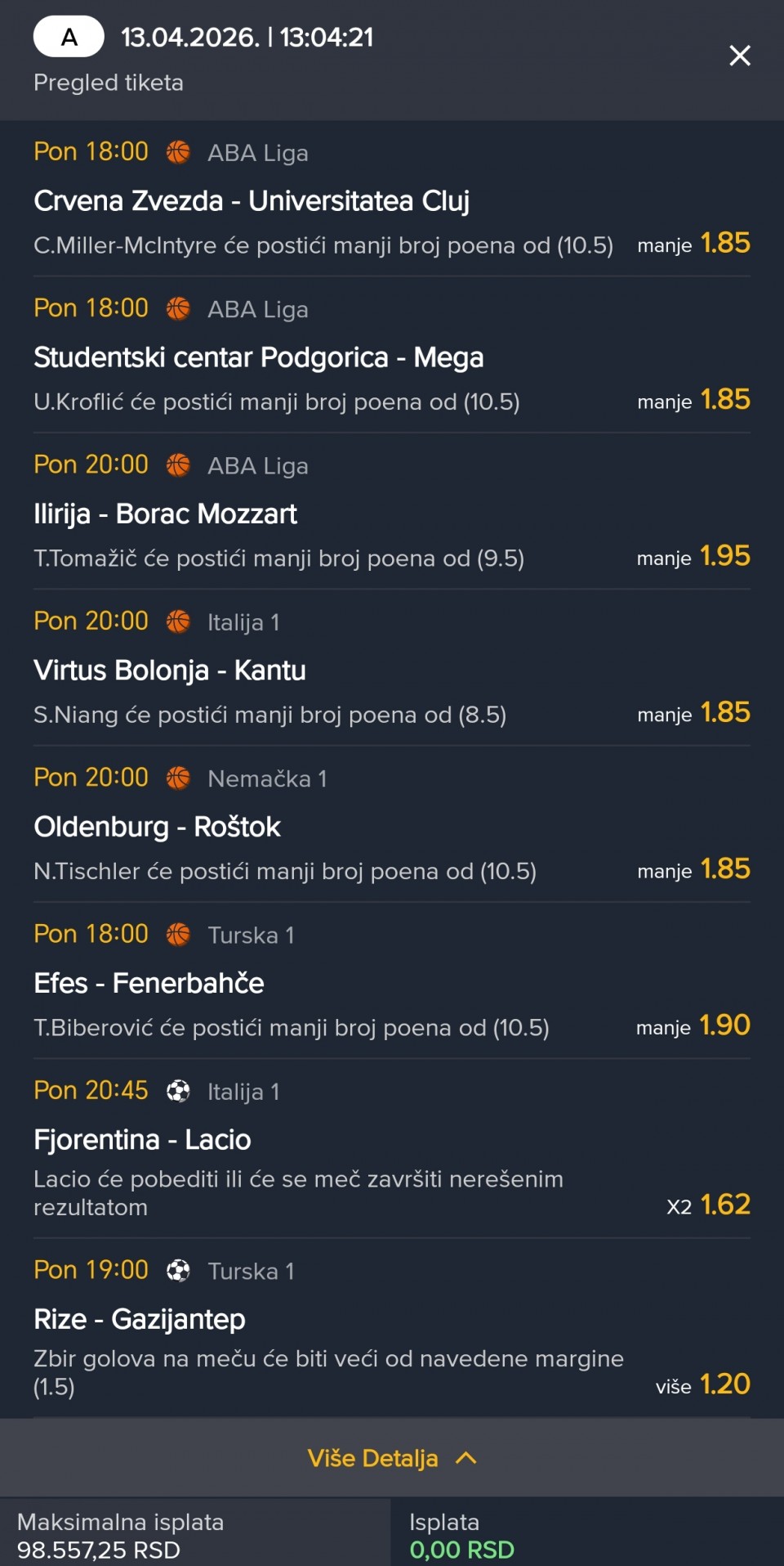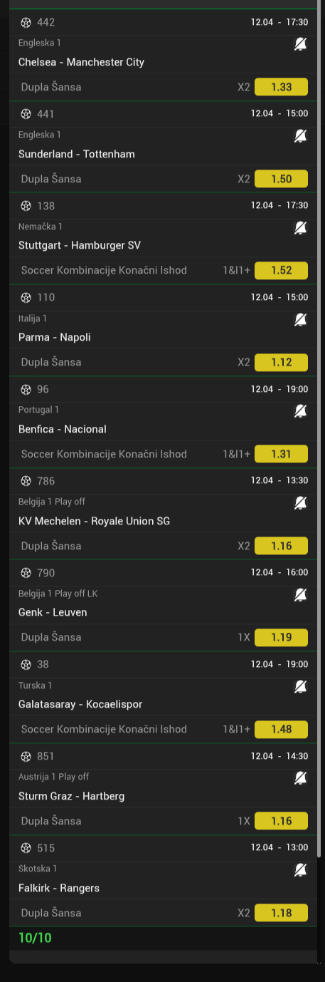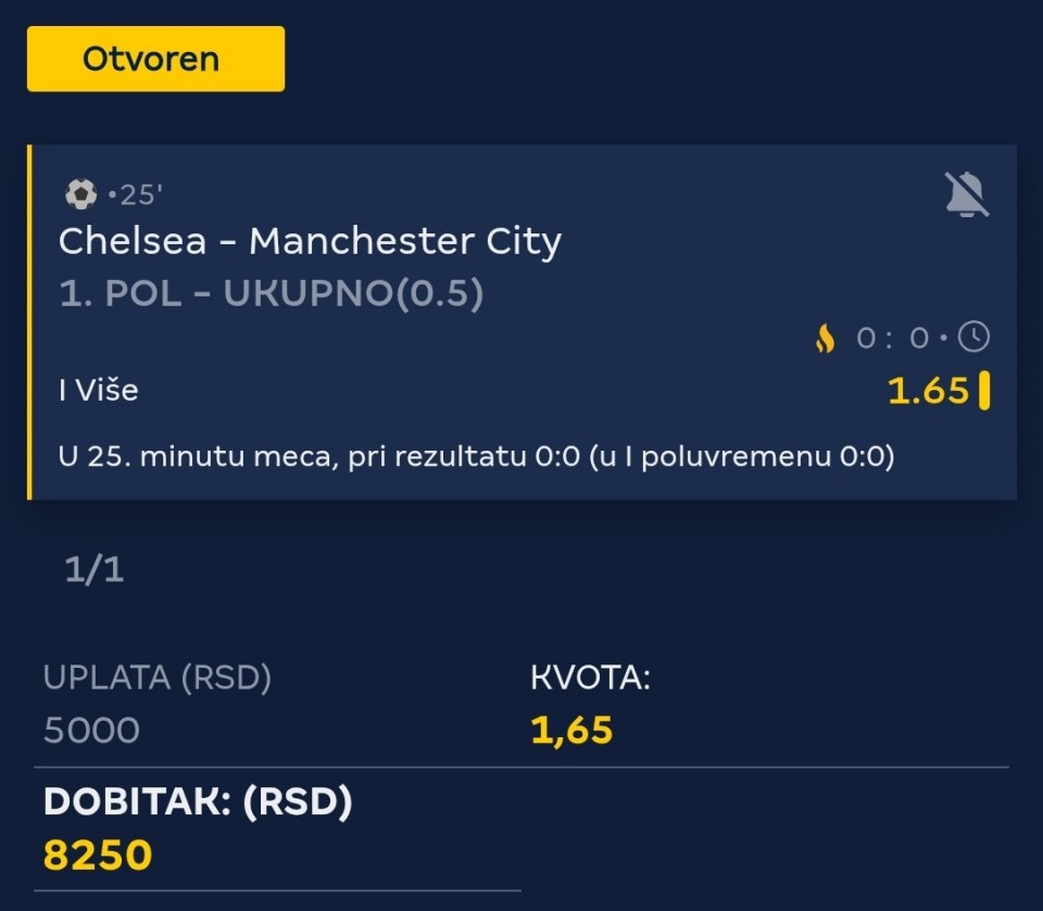 Serija 3+ golova se nastavilja u Frajburgu. Mislio sam da je pad. Na sofascore i na Aiscore stoji 0:1 90+10. Odjednom izbaci ft 4:1. Krivo mi bilo sto nisam odigrao i prelaz jer je bio jedan. Posle na 0:1 sam video da nije bilo u ponudi. Ceka se...Serija 3+ golova se nastavilja u Frajburgu. Mislio sam da je pad. Na sofascore i na Aiscore stoji 0:1 90+10. Odjednom izbaci ft 4:1. Krivo mi bilo sto nisam odigrao i prelaz jer je bio jedan. Posle na 0:1 sam video da nije bilo u ponudi. Ceka se jos jedan par na triplu. Sanse male za prolaz jer je 0:0 ht. Cekam još dva gola. Kasnije izbacujem još jedan singl koji mi je jako interesantan kao ovaj. Show more
