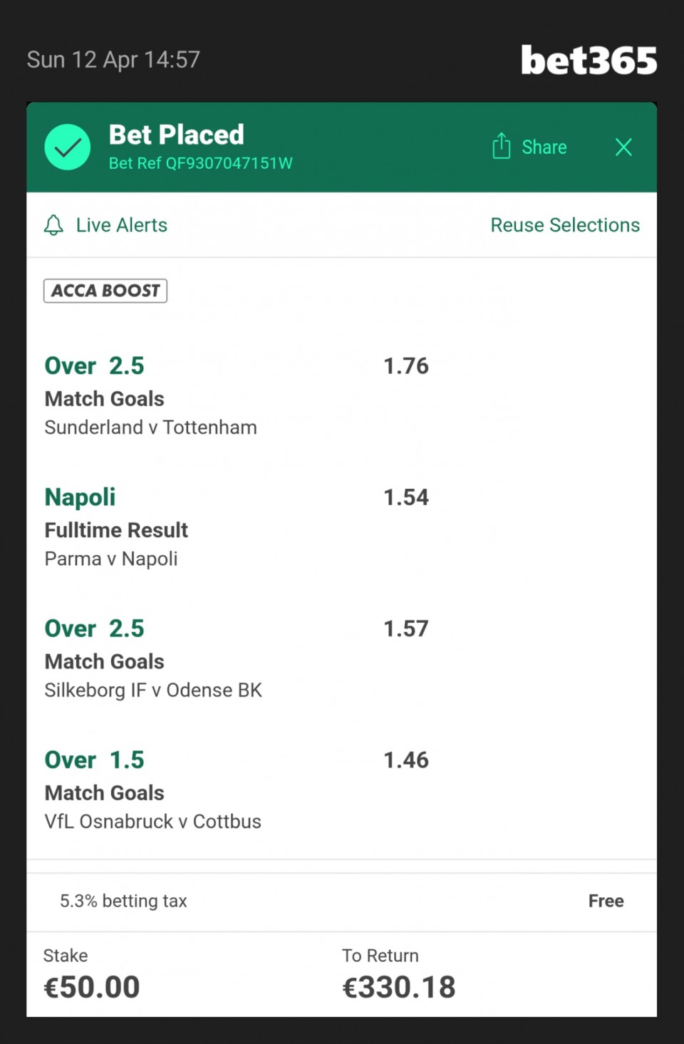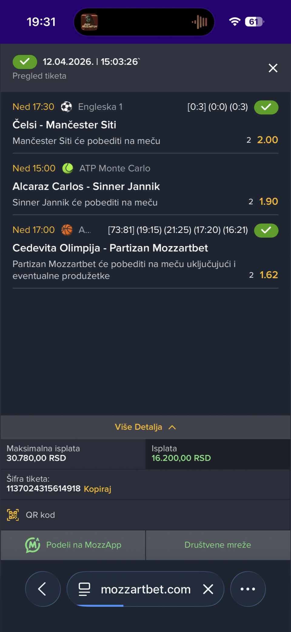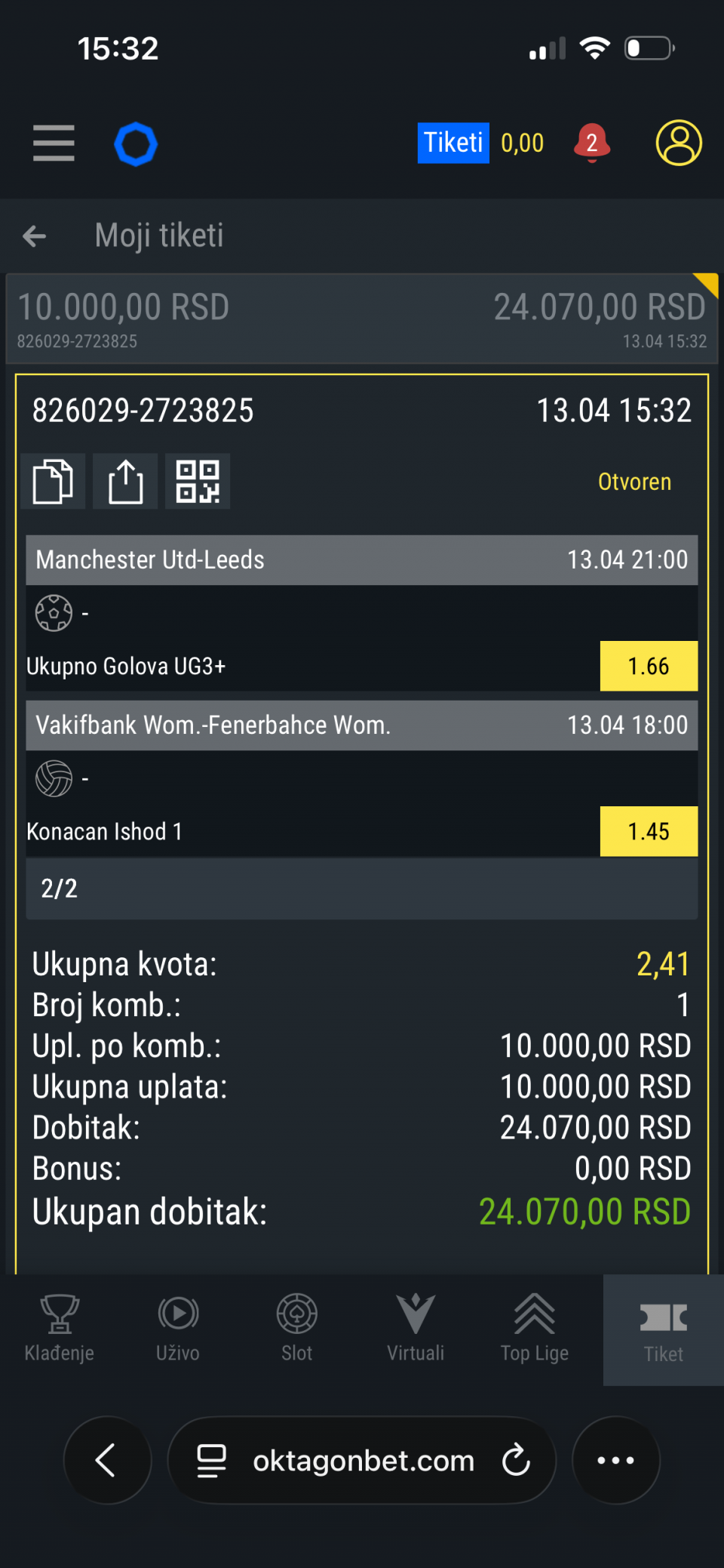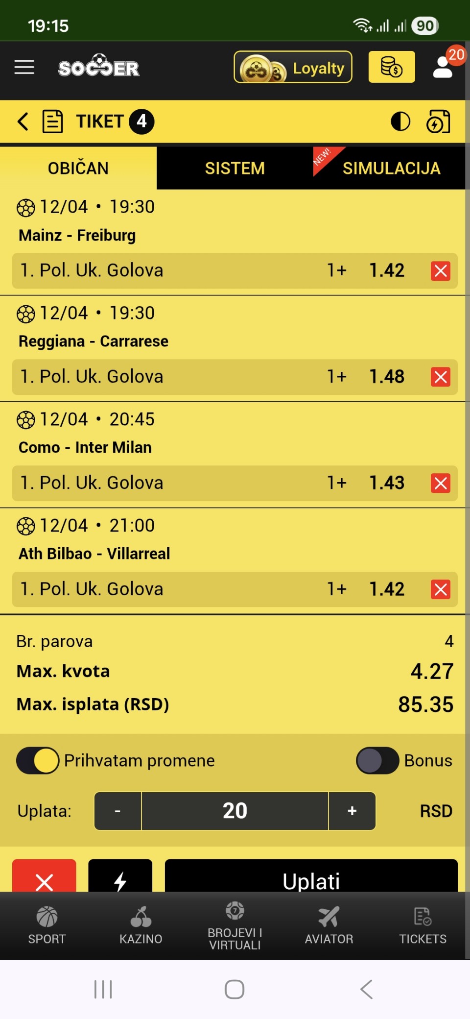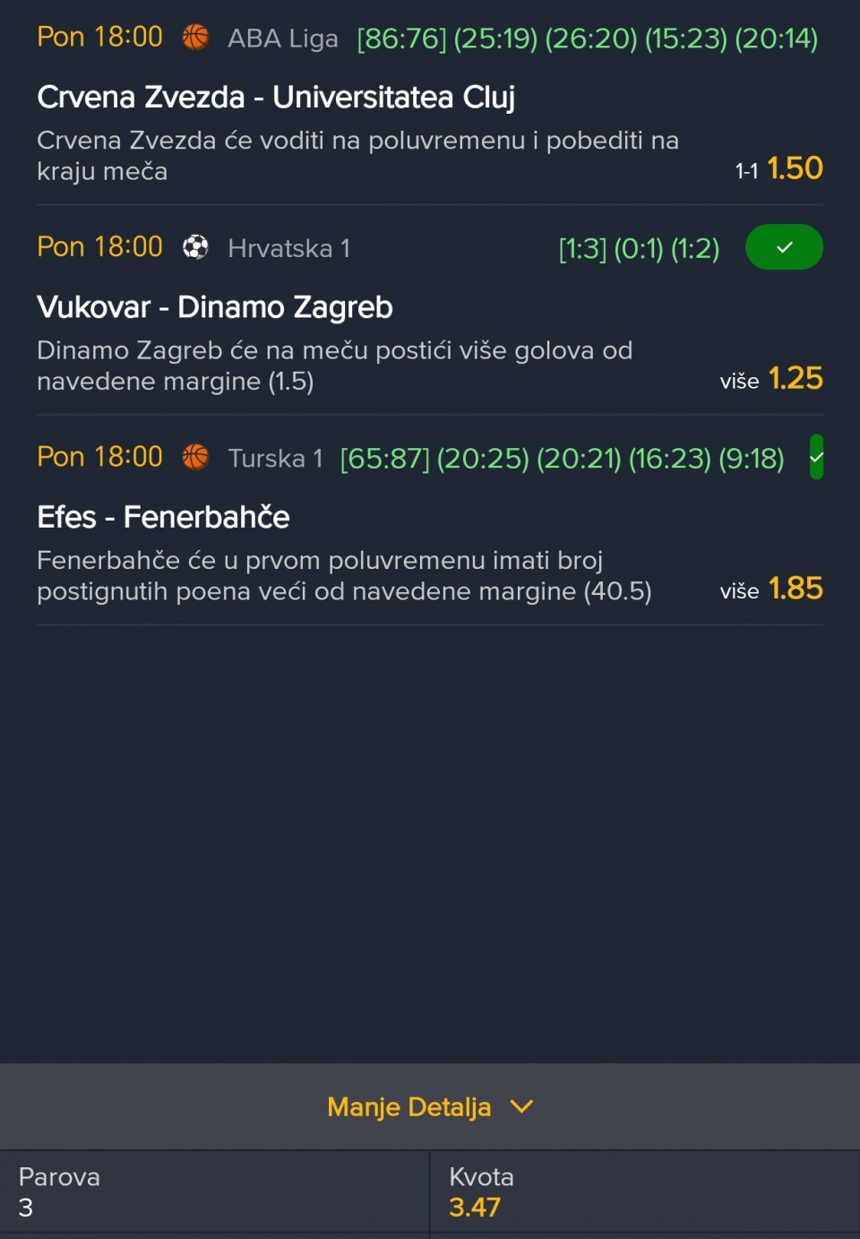 Serija 3+ golova se nastavilja u Frajburgu. Mislio sam da je pad. Na sofascore i na Aiscore stoji 0:1 90+10. Odjednom izbaci ft 4:1. Krivo mi bilo sto nisam odigrao i prelaz jer je bio jedan. Posle na 0:1 sam video da nije bilo u ponudi. Ceka se...Serija 3+ golova se nastavilja u Frajburgu. Mislio sam da je pad. Na sofascore i na Aiscore stoji 0:1 90+10. Odjednom izbaci ft 4:1. Krivo mi bilo sto nisam odigrao i prelaz jer je bio jedan. Posle na 0:1 sam video da nije bilo u ponudi. Ceka se jos jedan par na triplu. Sanse male za prolaz jer je 0:0 ht. Cekam još dva gola. Kasnije izbacujem još jedan singl koji mi je jako interesantan kao ovaj. Show more