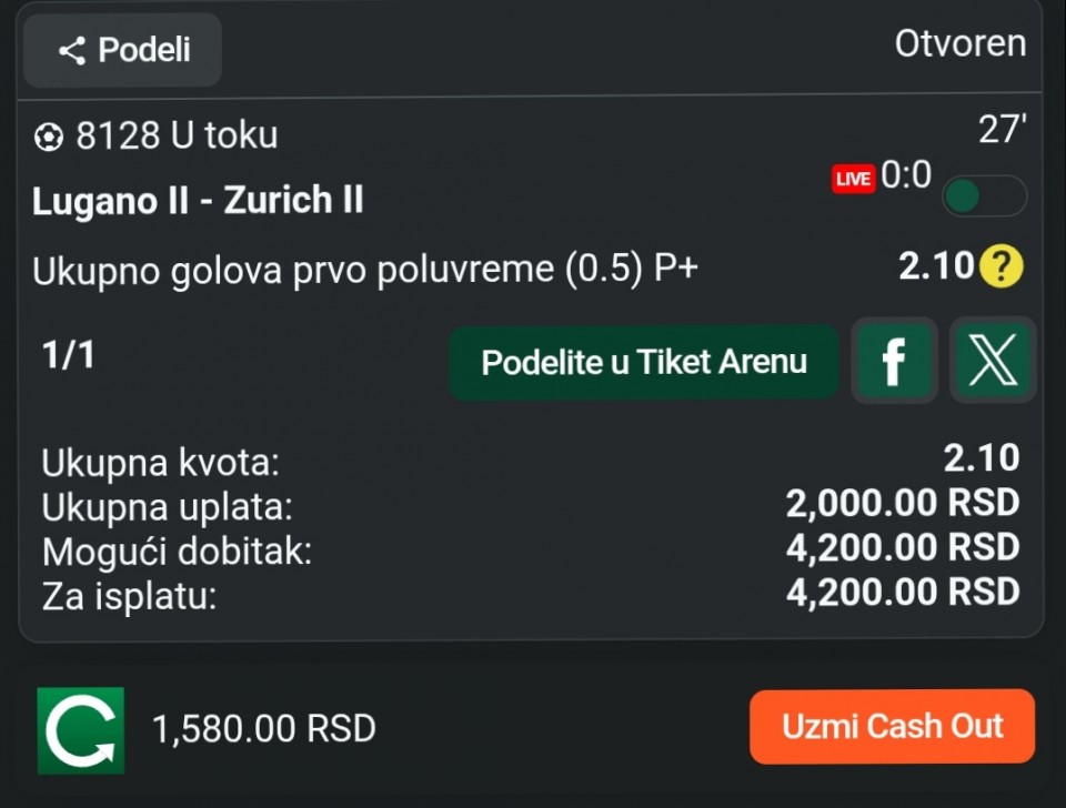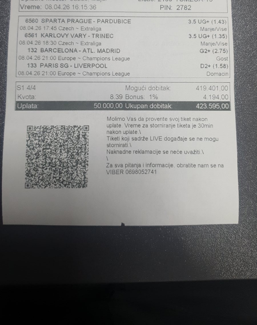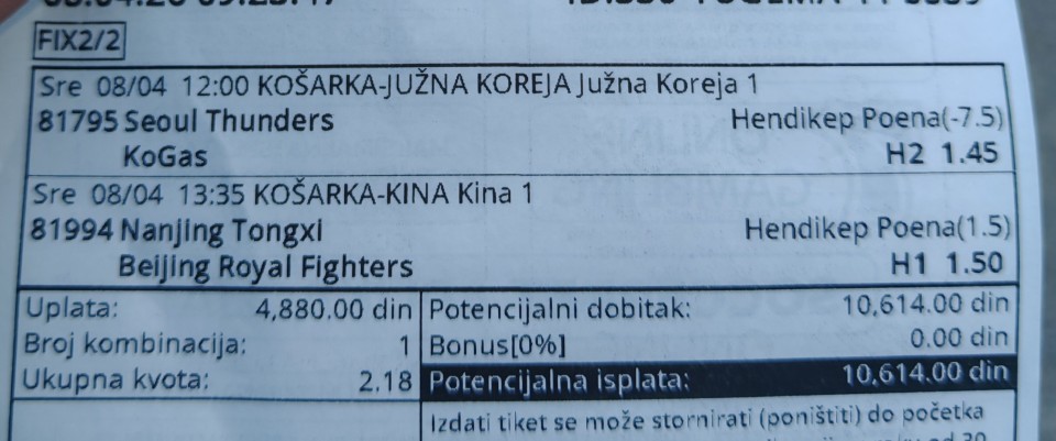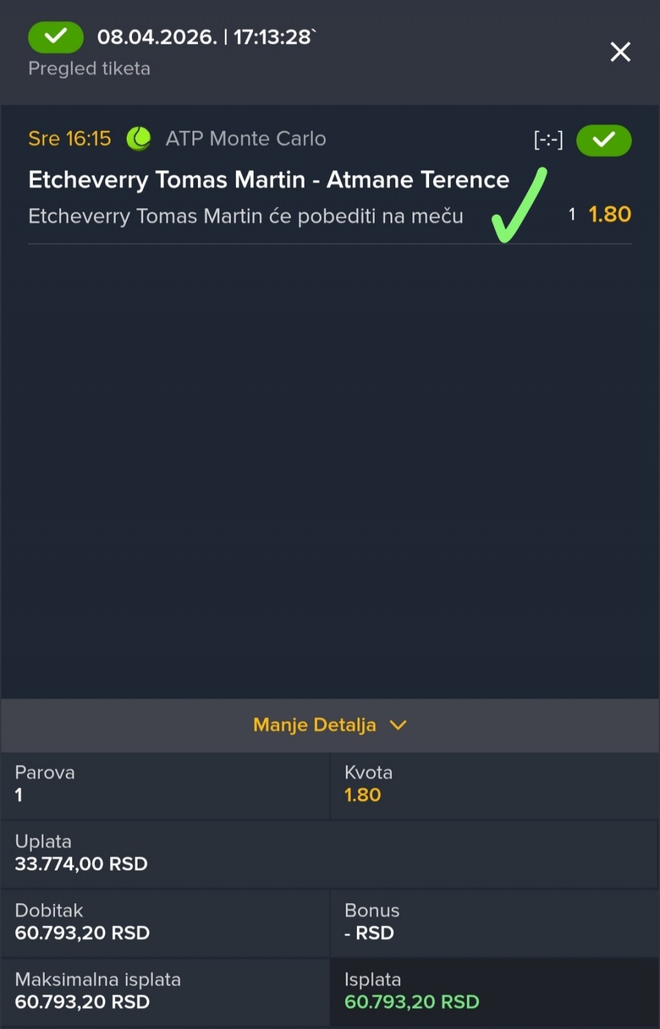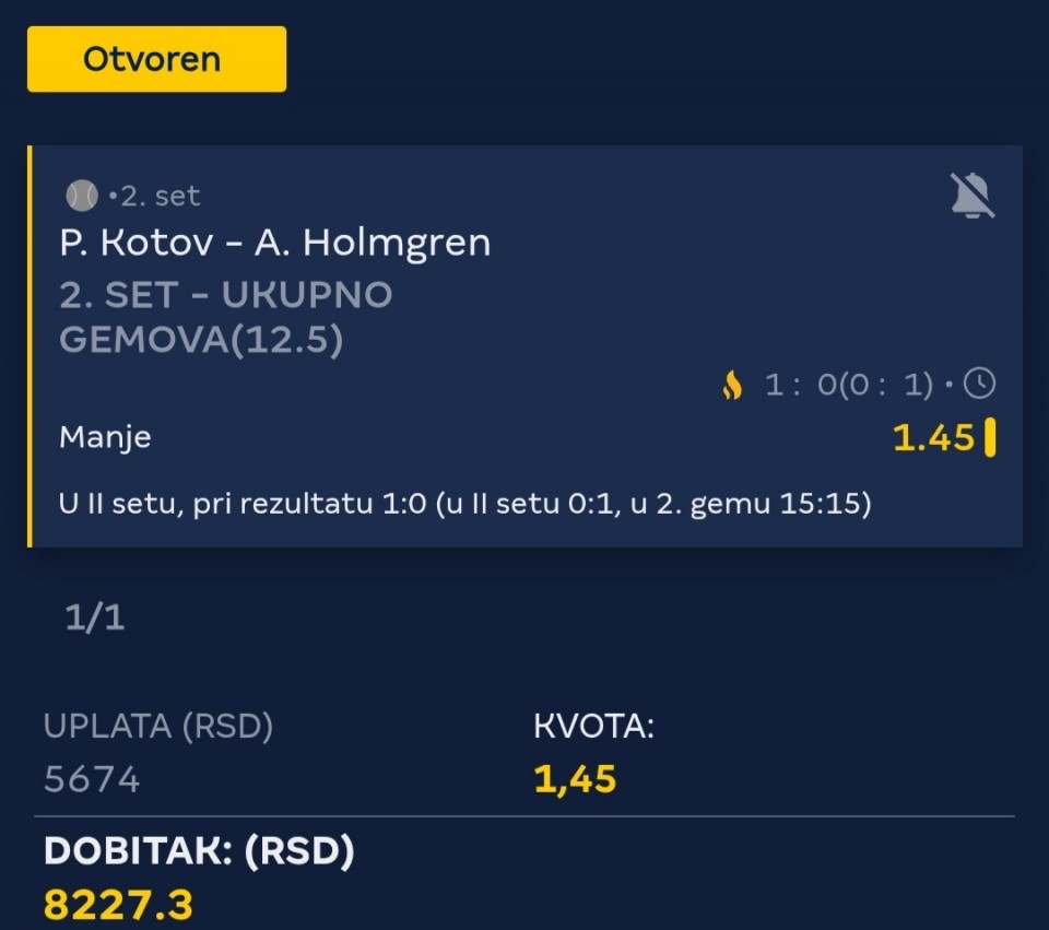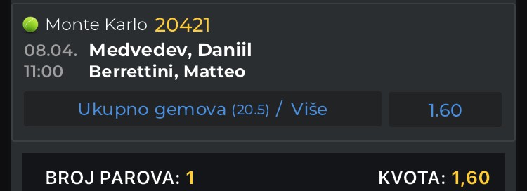 Tip: K1, kvota: 1.25, sigurnost: 8
