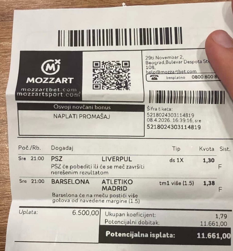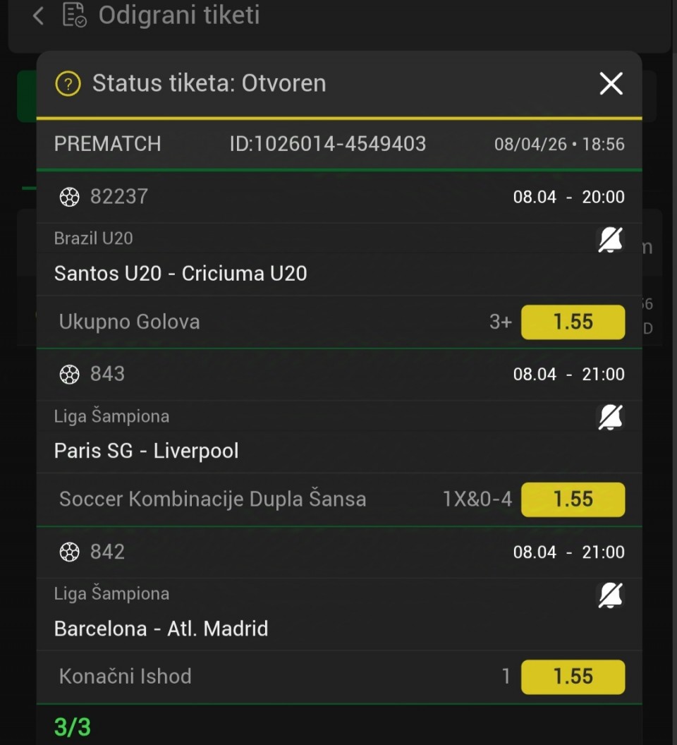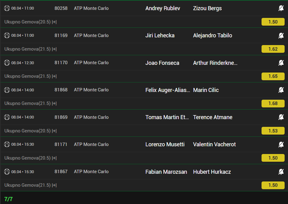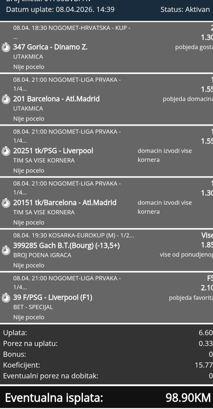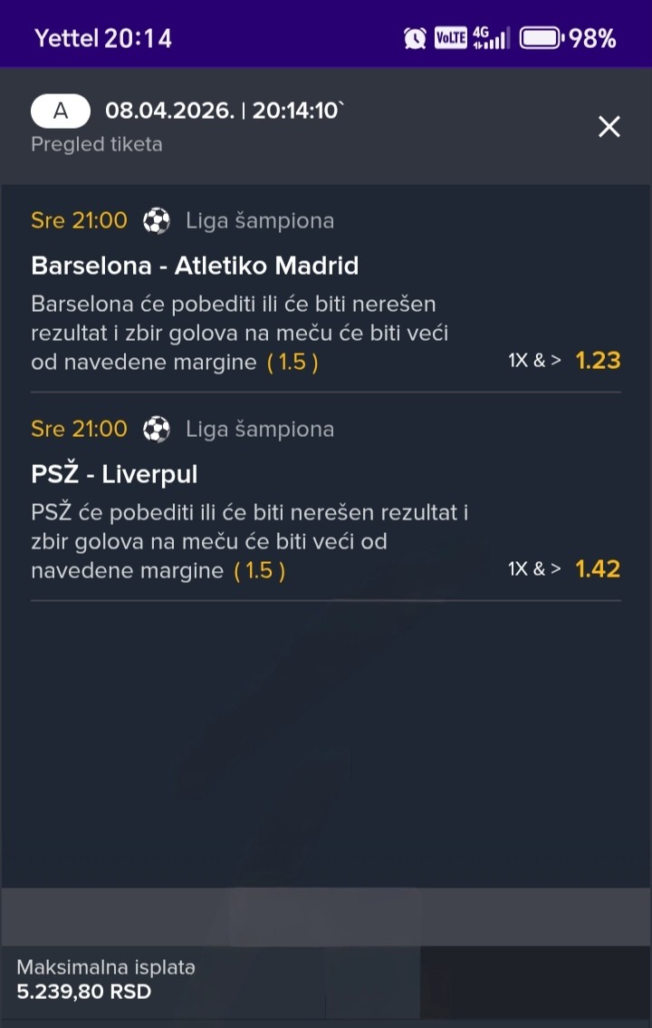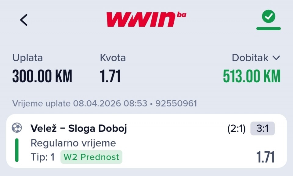 Tip: K1, kvota: 1.25, sigurnost: 8