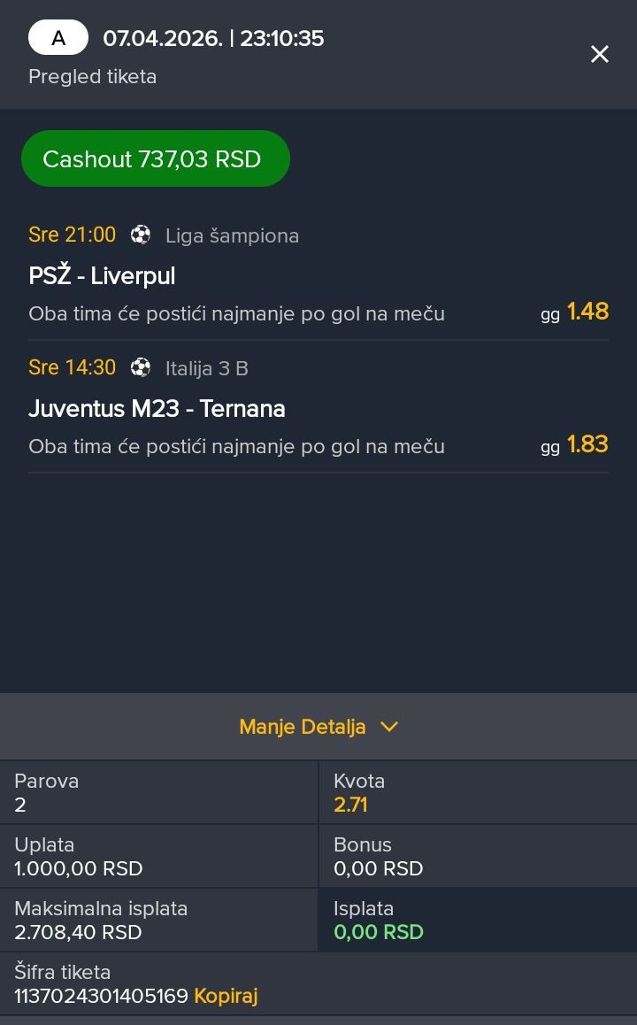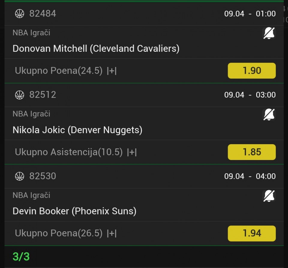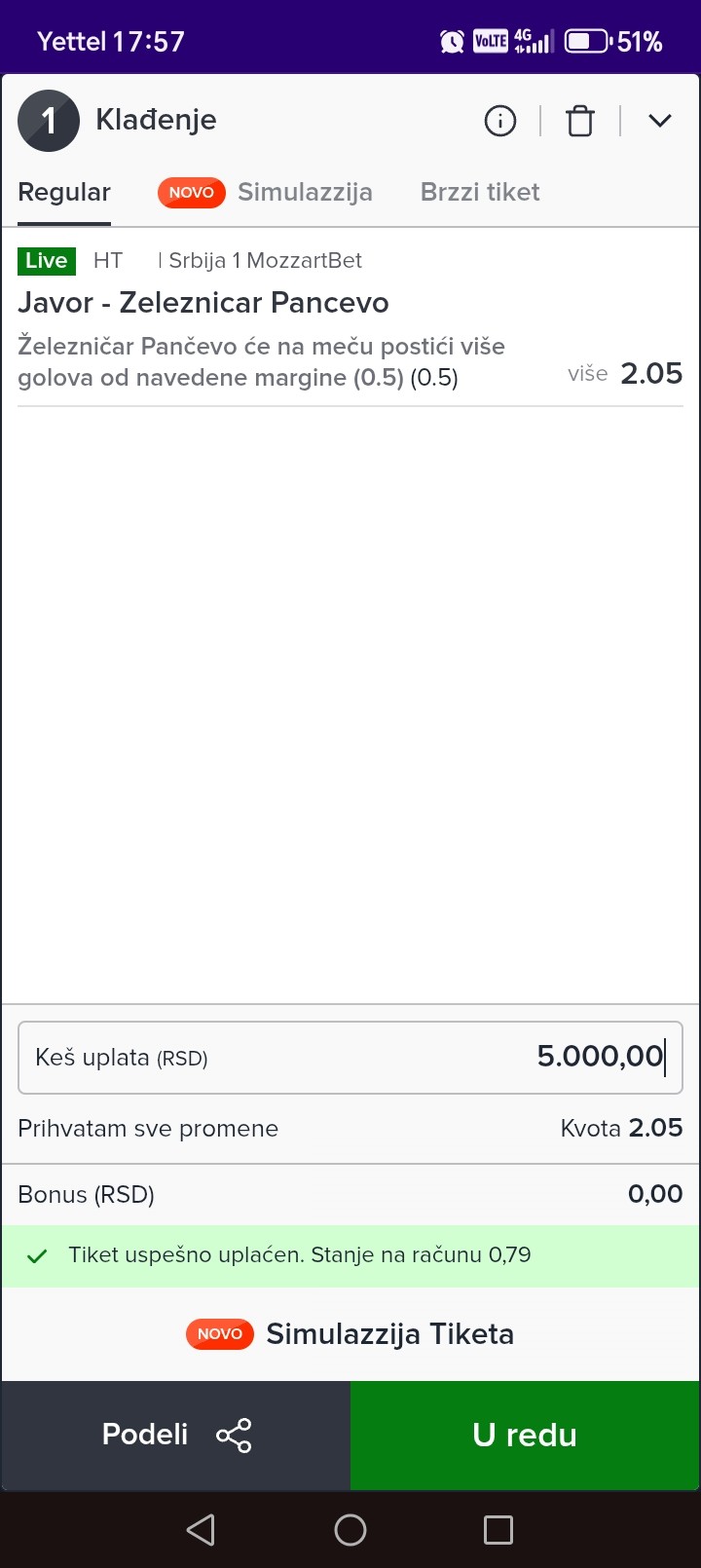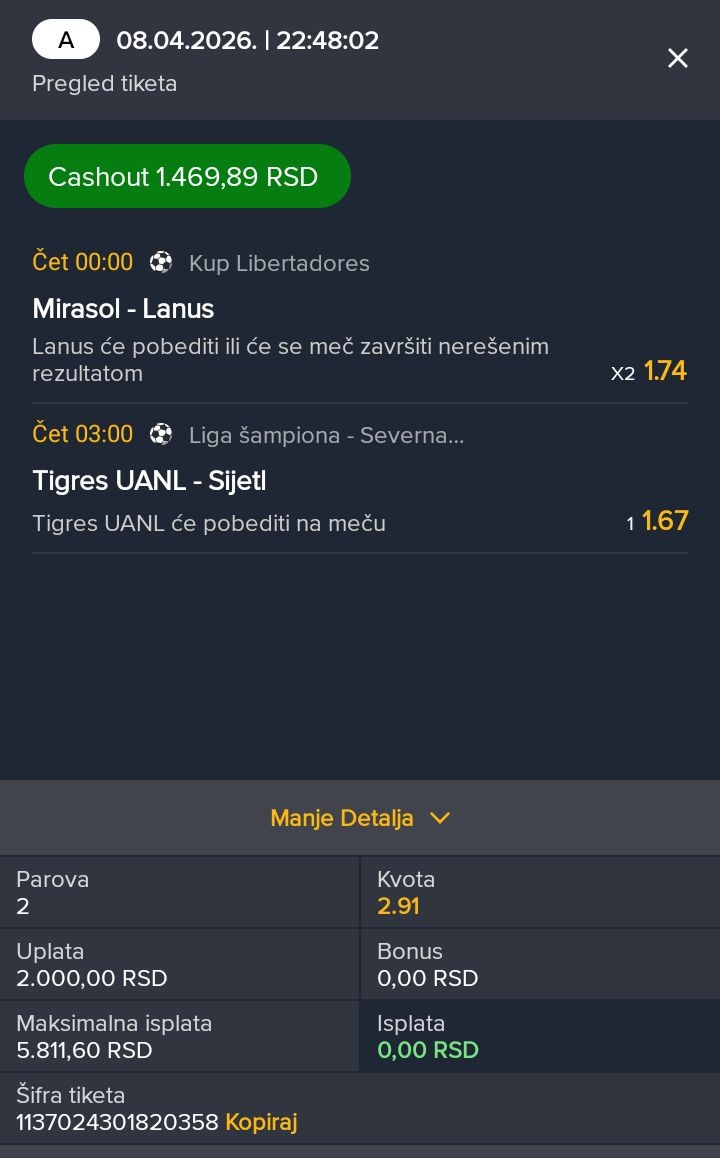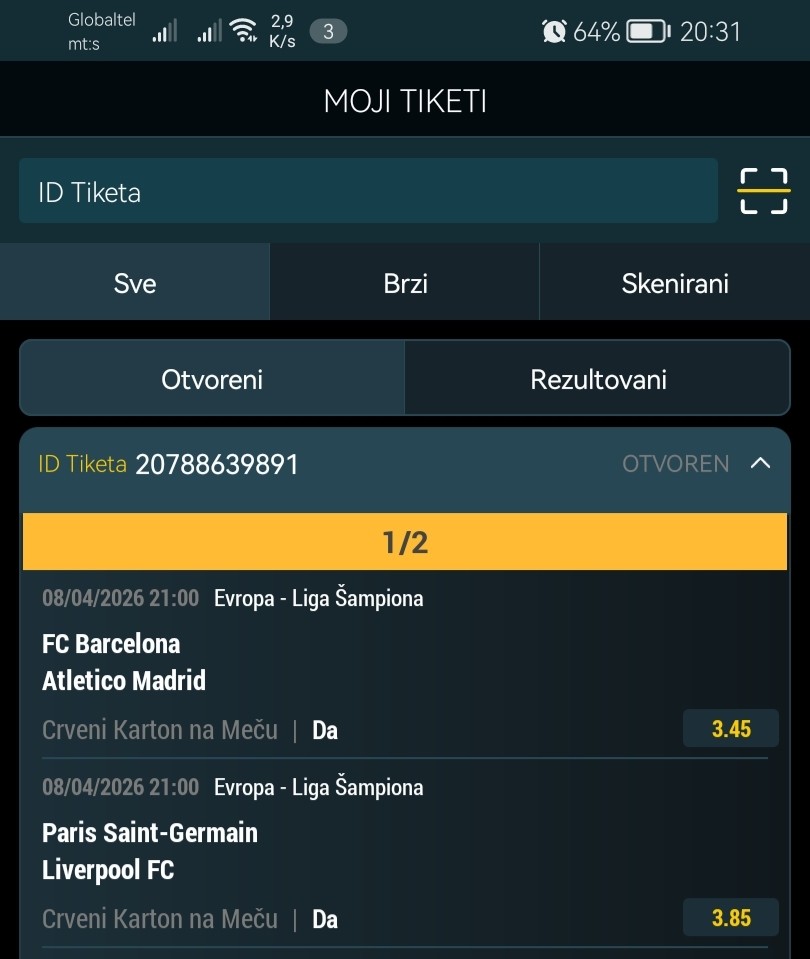 Tip: K1, kvota: 1.25, sigurnost: 8