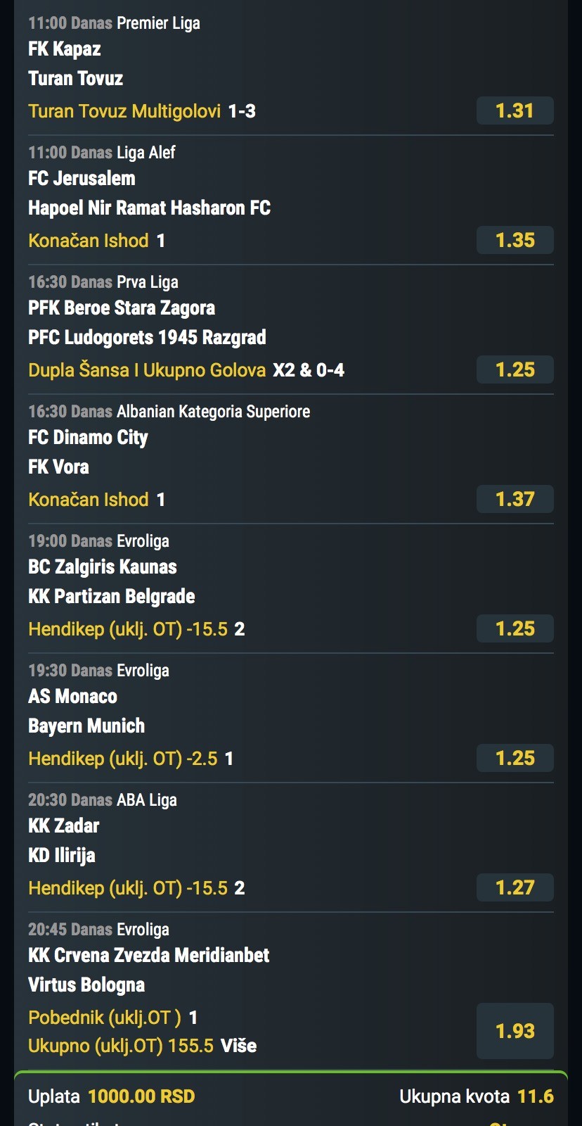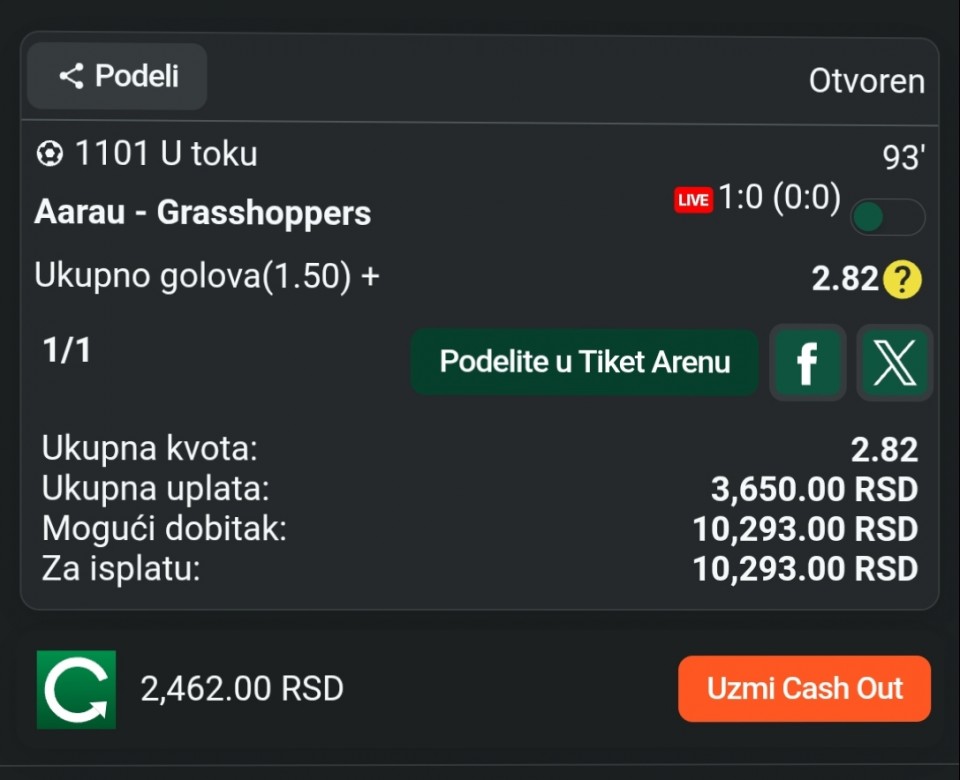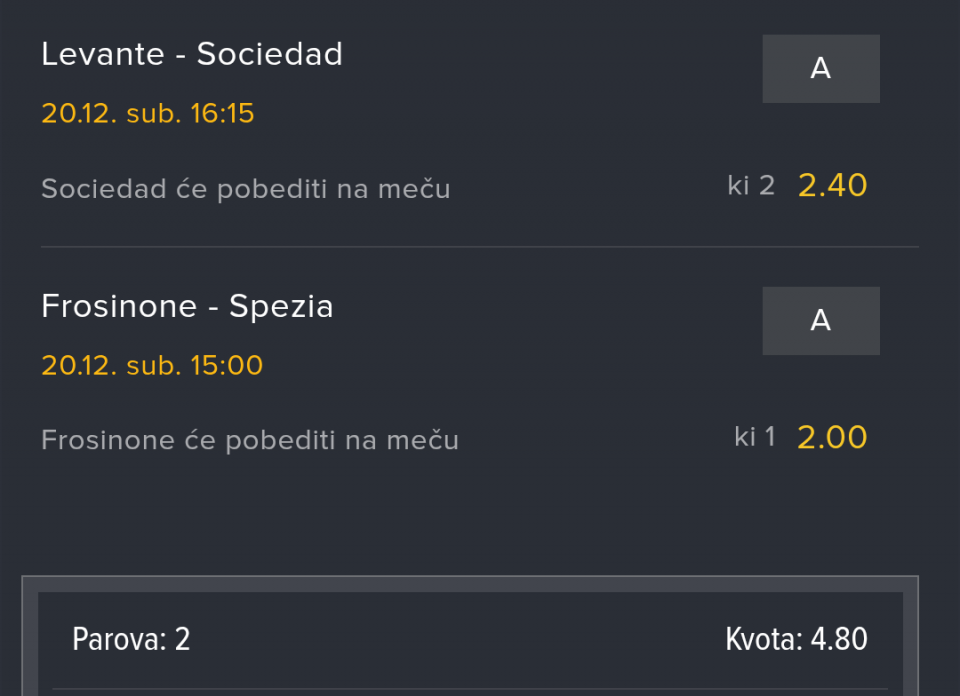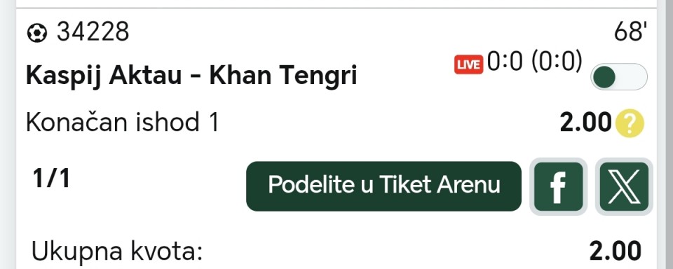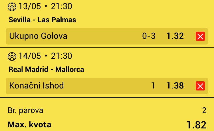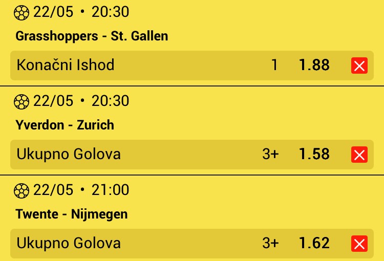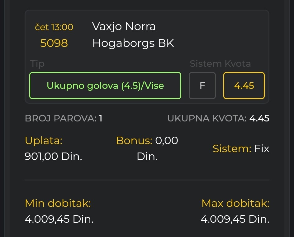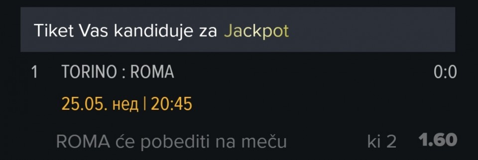 Obzirom da igram iskljucivo minus, svakog dana padam jer dolaze produzeci, a danas sam oborio rekord. 3 tiketa i na sva tri X. Ne verujem da se nekad nekom ovako mesto desilo.