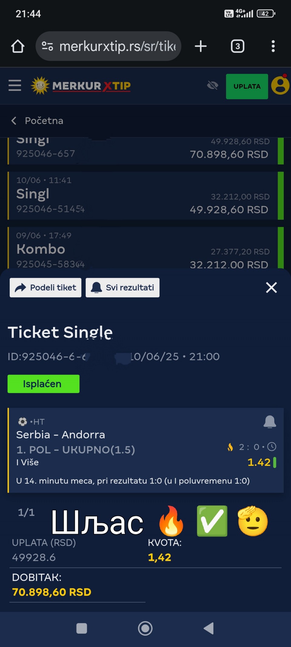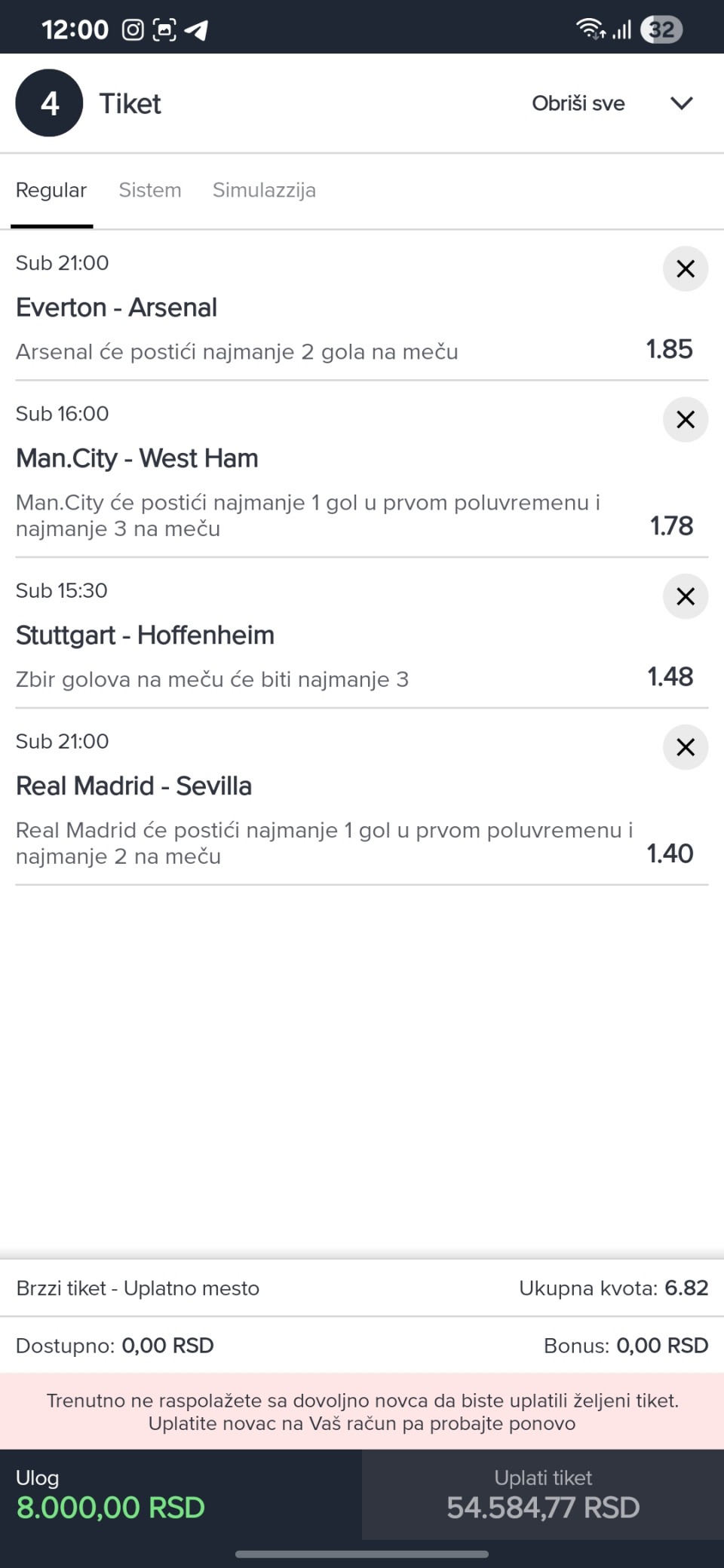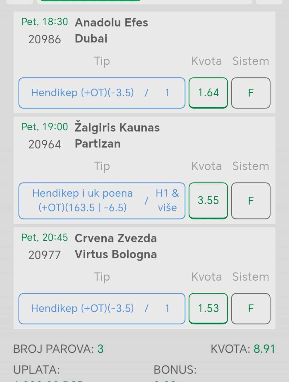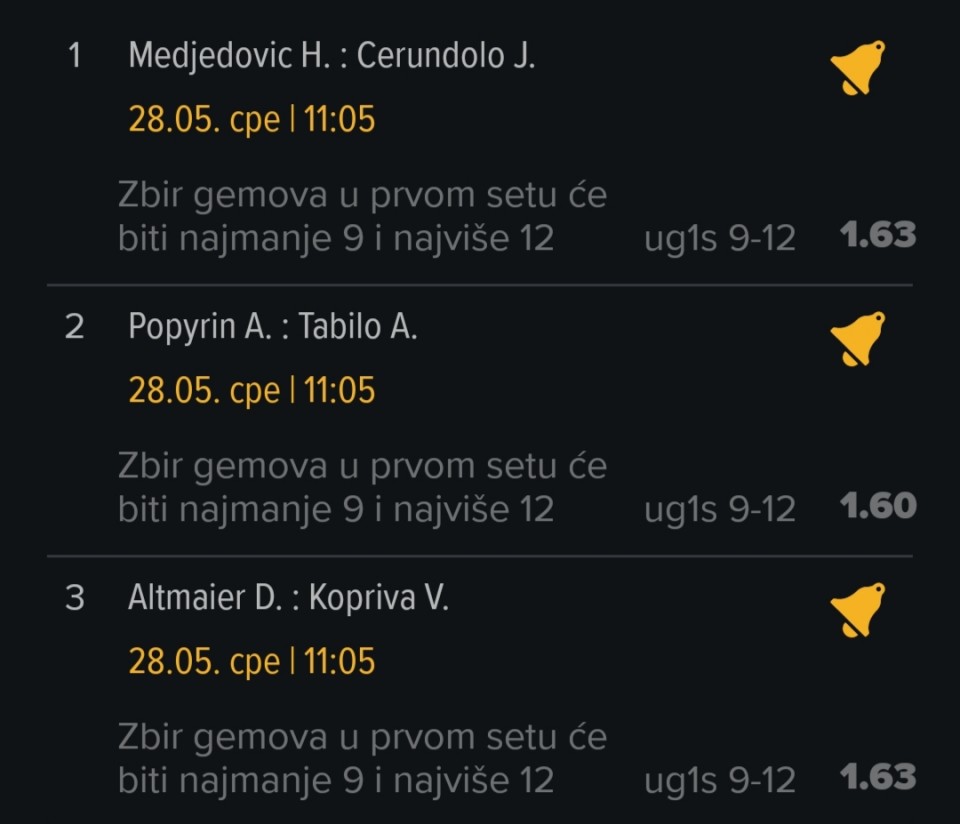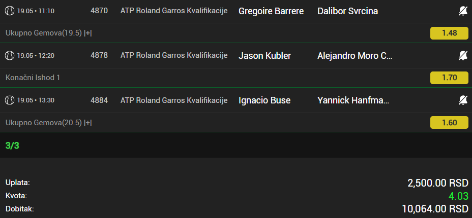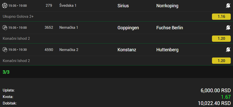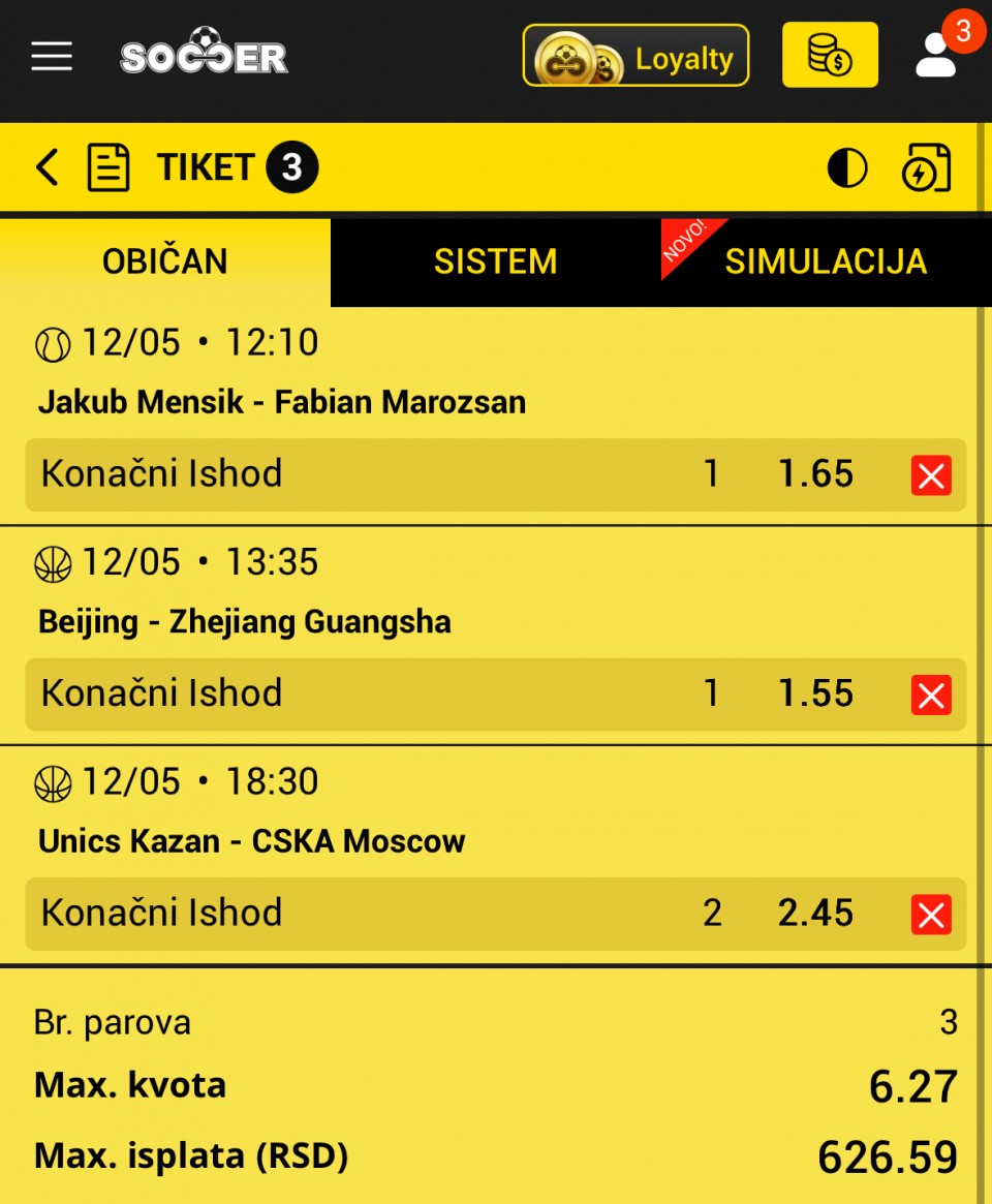 Obzirom da igram iskljucivo minus, svakog dana padam jer dolaze produzeci, a danas sam oborio rekord. 3 tiketa i na sva tri X. Ne verujem da se nekad nekom ovako mesto desilo.
