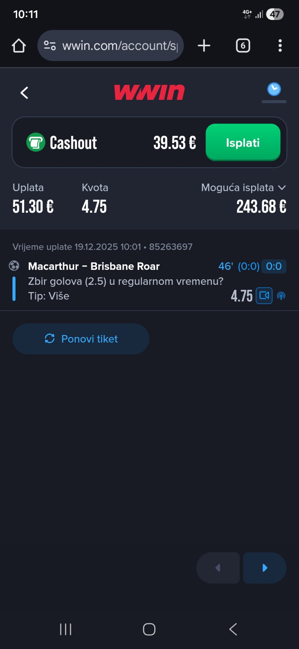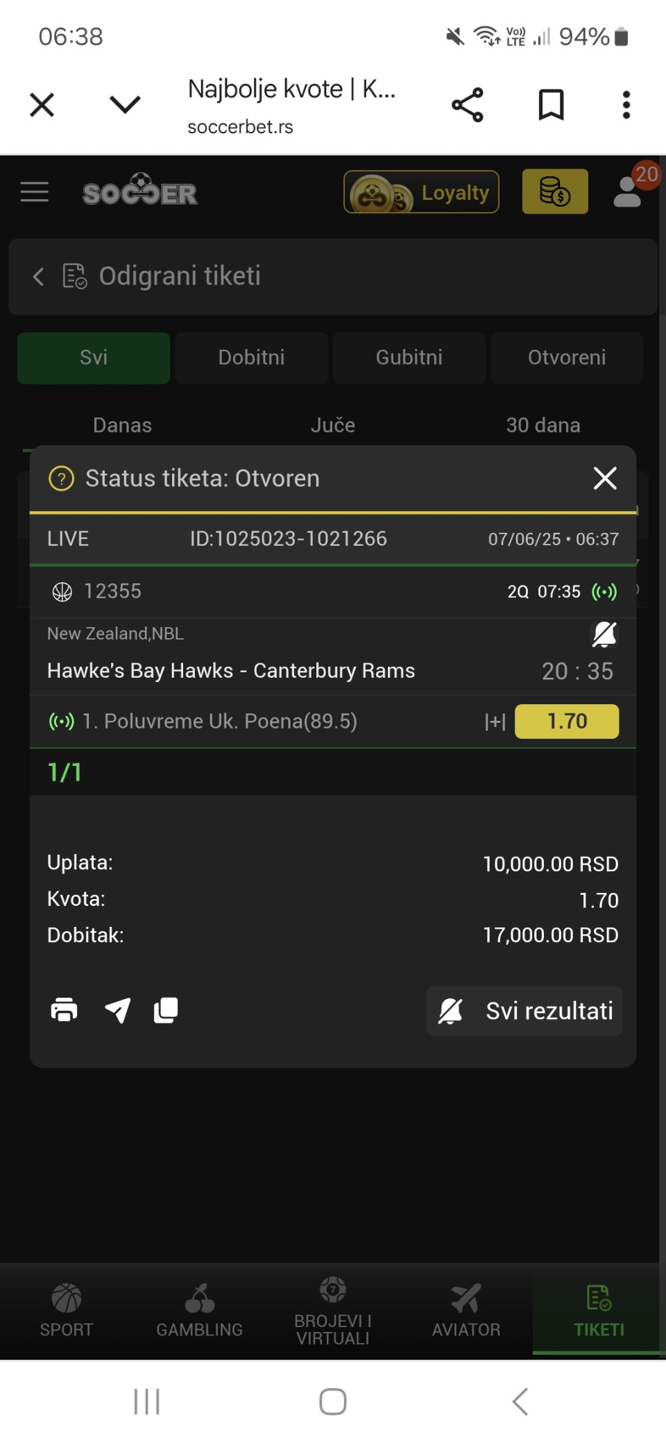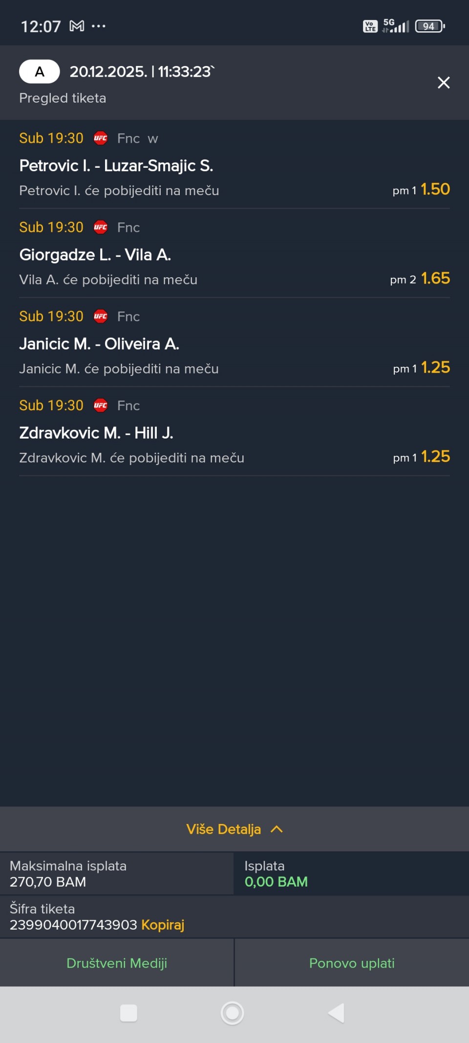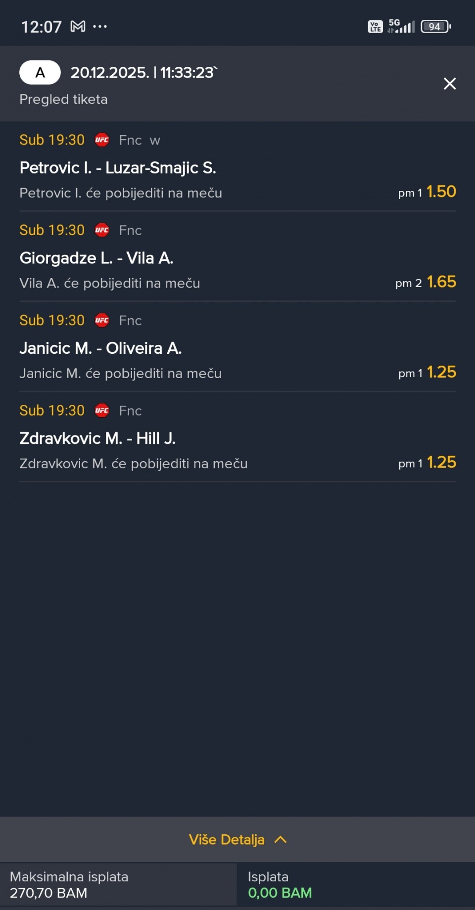 Obzirom da igram iskljucivo minus, svakog dana padam jer dolaze produzeci, a danas sam oborio rekord. 3 tiketa i na sva tri X. Ne verujem da se nekad nekom ovako mesto desilo.