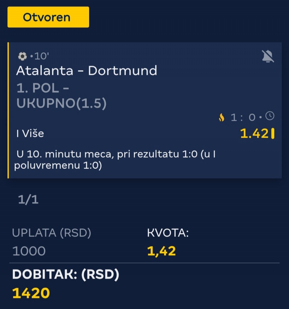 18:45 🇪🇺 Atalanta - Dortmund, tip gg