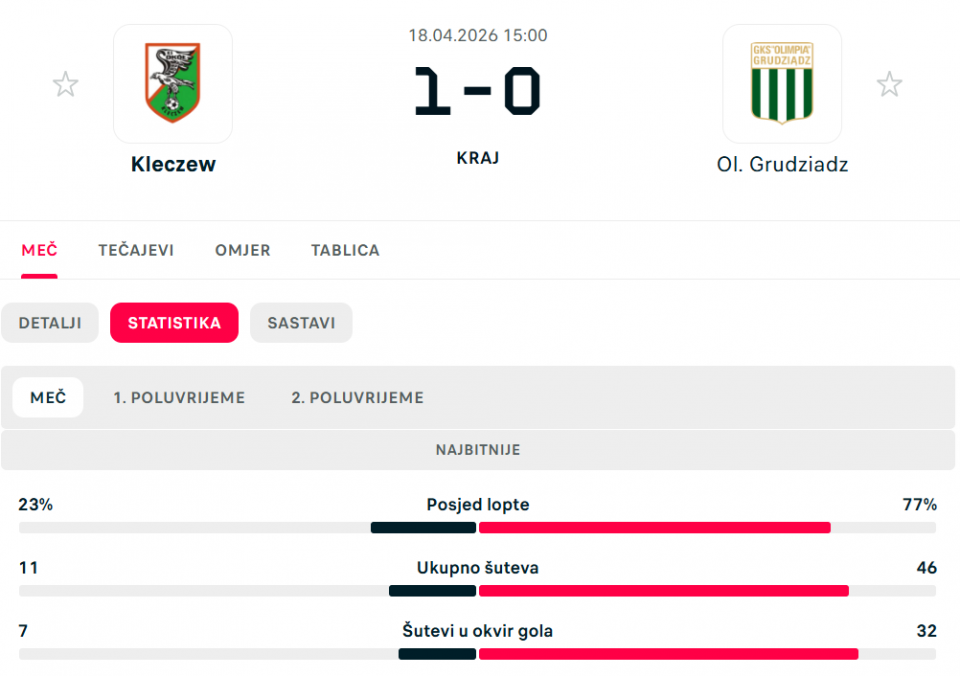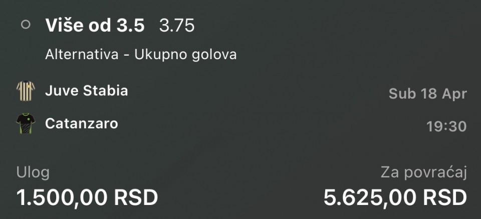 tip: over 3.5 (74 minut trenutni rezultat 0:3)