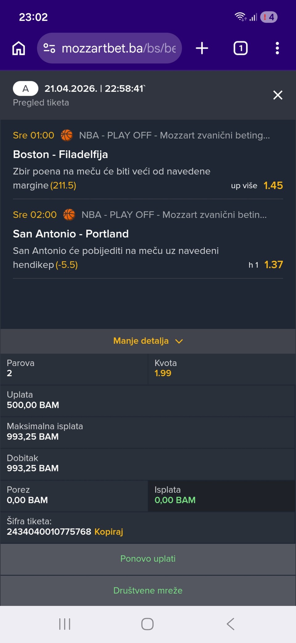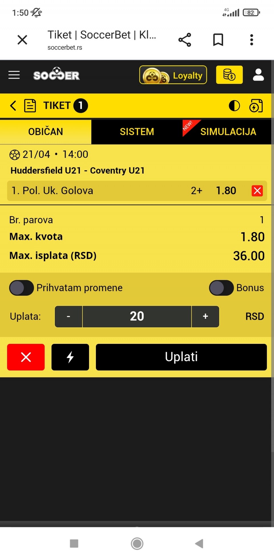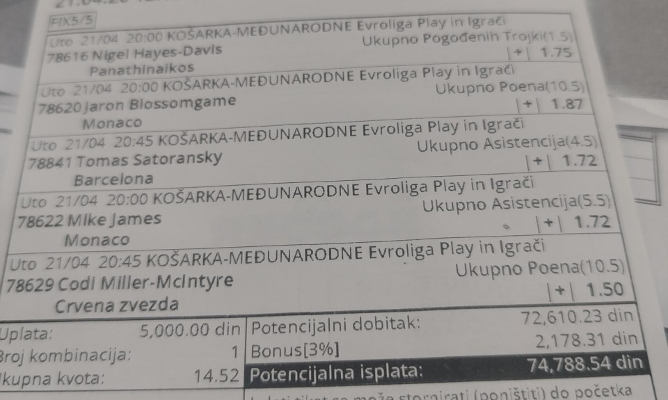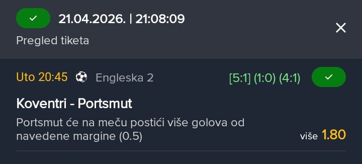 Tip: UP+ (170.5), kvota: 2.2, sigurnost: 8