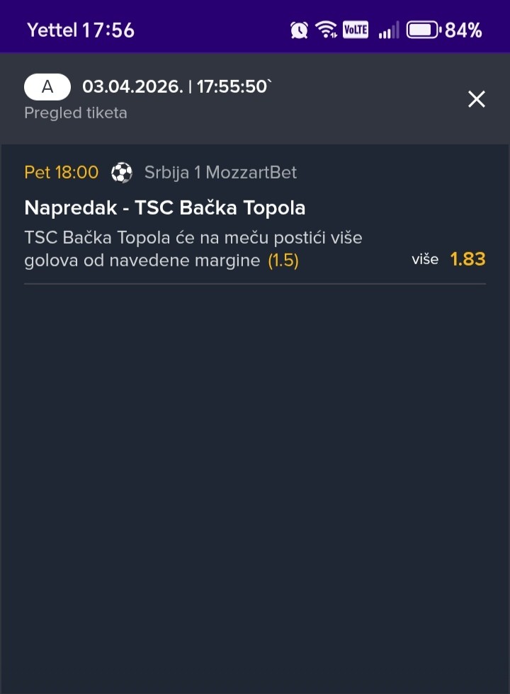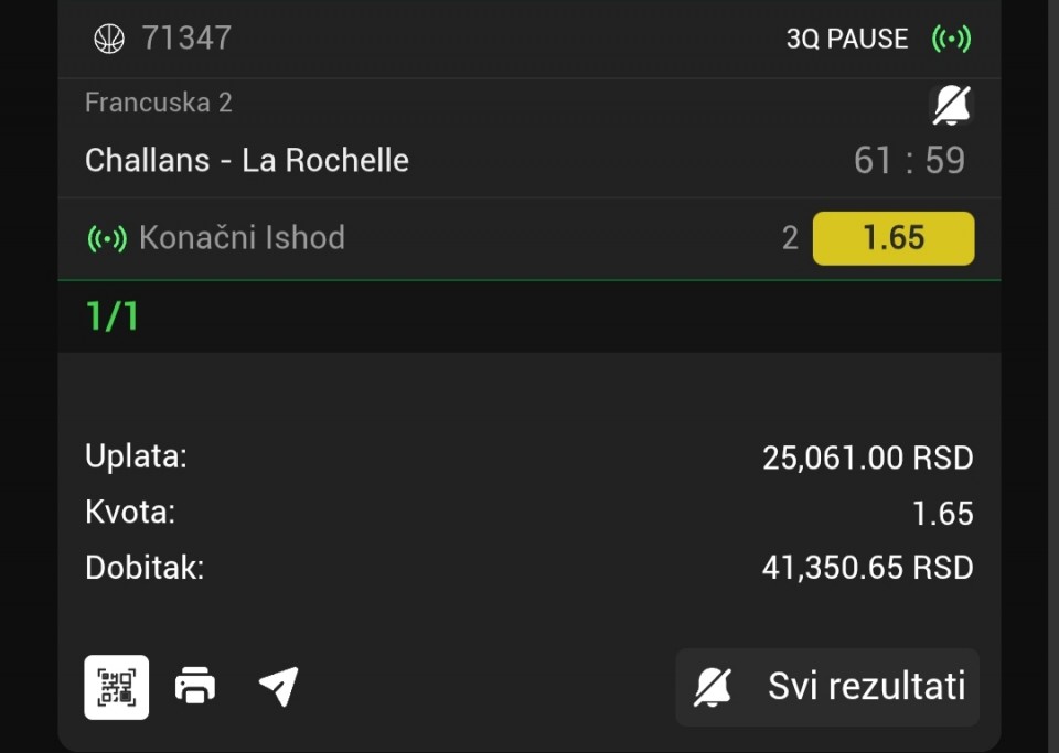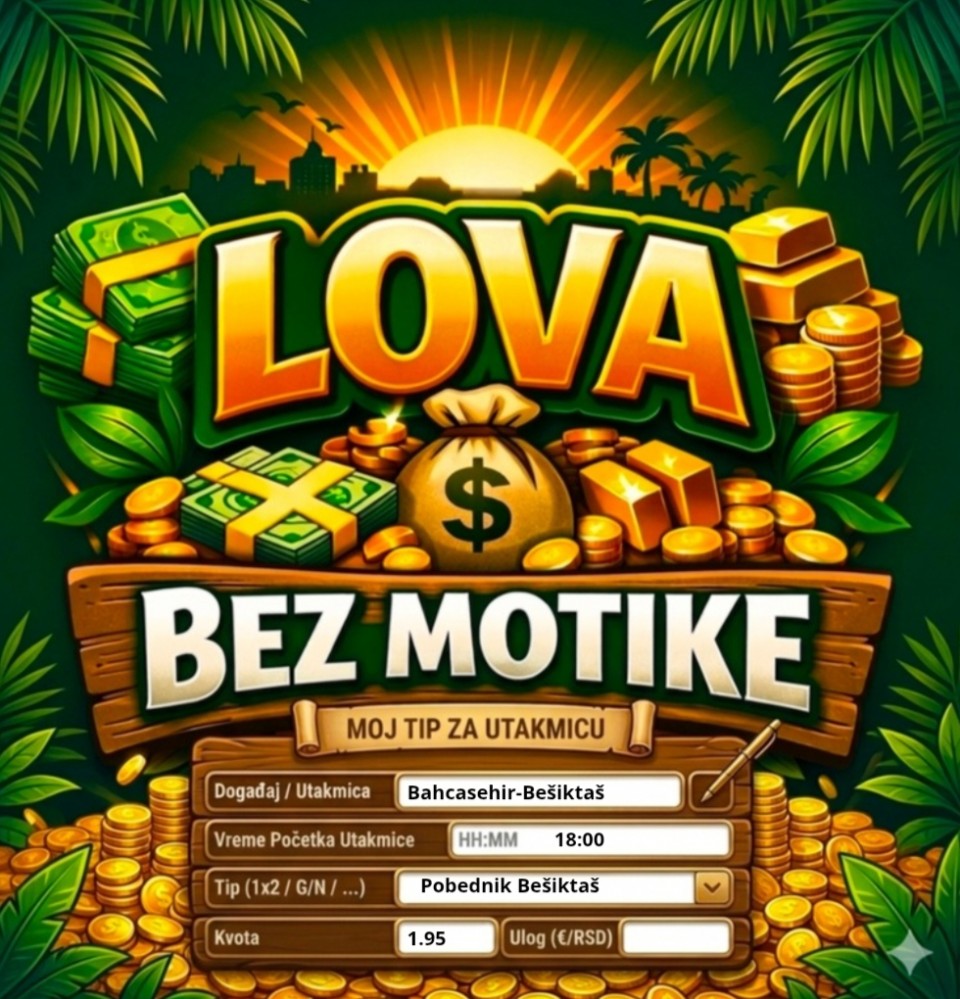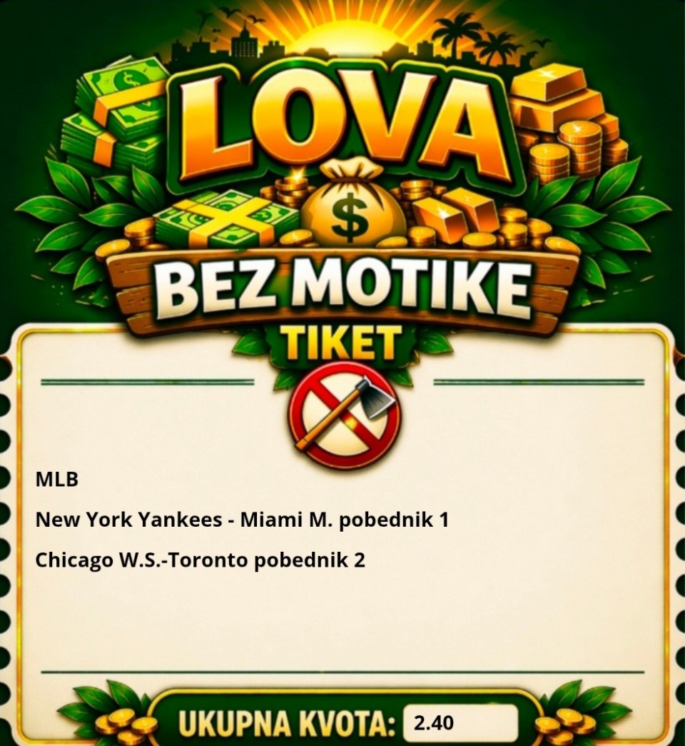 Za večeras sam iskombinovao ovo, vidite ulog i kvotu. Nisam se mnogo zalijetao jer su mi večeras nekako sve tekme škakljive. Postavit ću i drugi rizičniji tiket u komentaru koji se sastoji većinom od igrača koji izlaze iz povreda i traže formu...Za večeras sam iskombinovao ovo, vidite ulog i kvotu. Nisam se mnogo zalijetao jer su mi večeras nekako sve tekme škakljive. Postavit ću i drugi rizičniji tiket u komentaru koji se sastoji većinom od igrača koji izlaze iz povreda i traže formu.