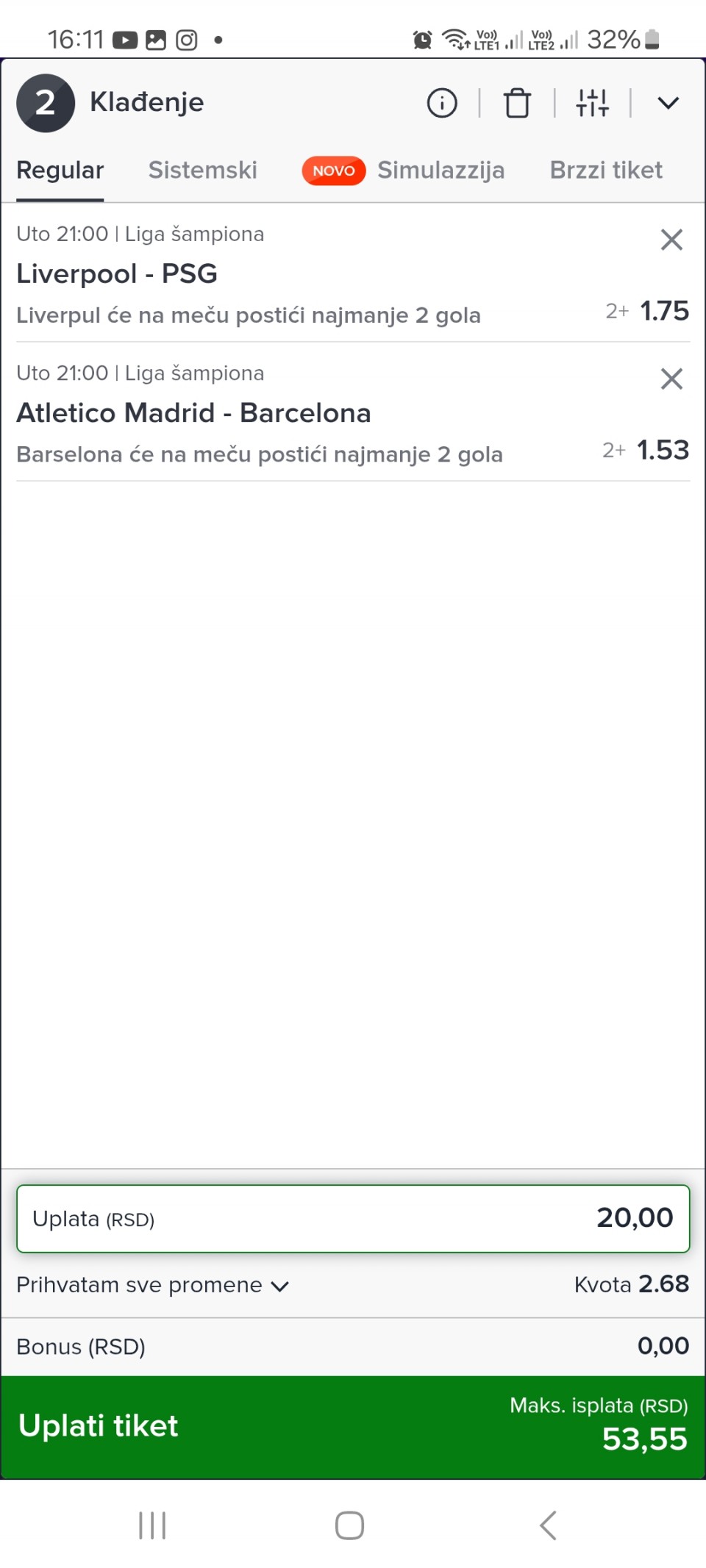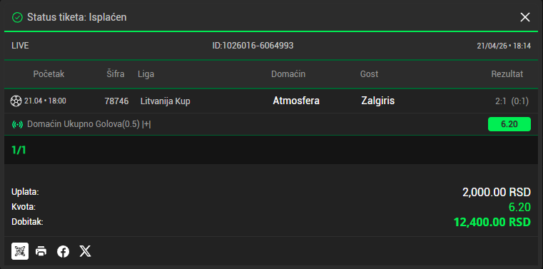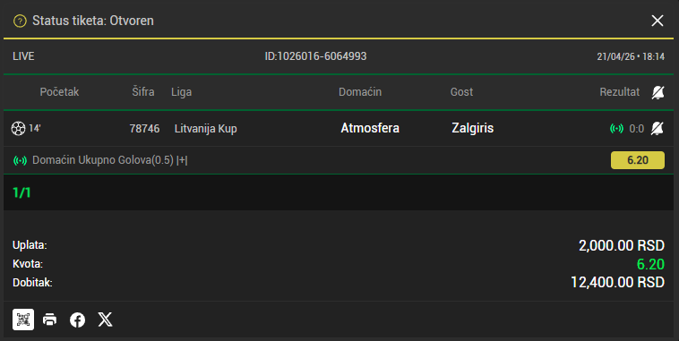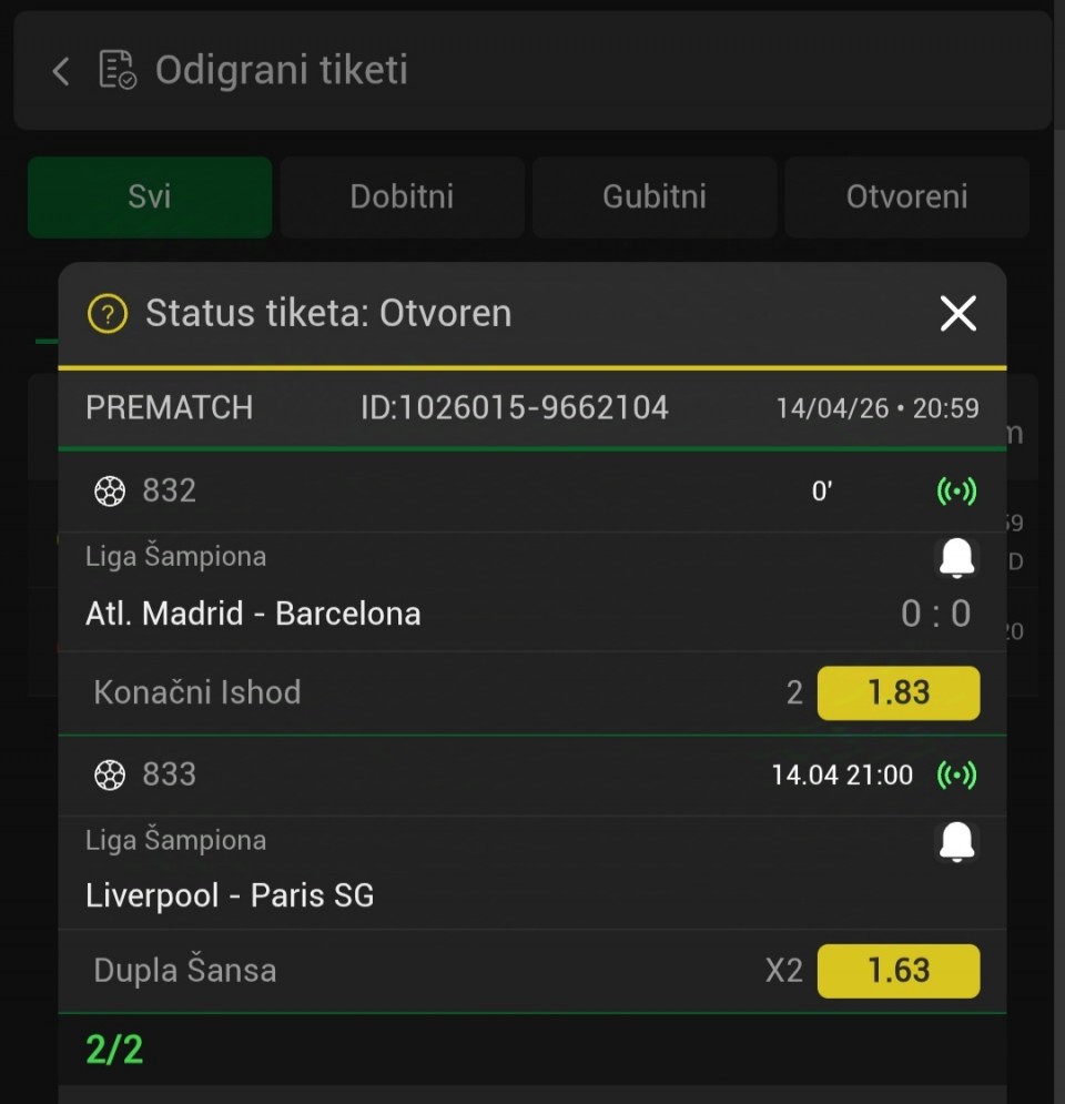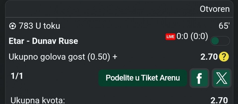 LiveBet - nova live betting igra je ovde! Upravo smo pokrenuli LiveBet - besplatnu tipster platformu gde možeš da igraš live tikete na mečevima koji su u toku, bez pravog novca. Sve je u test fazi, svakog sata dobijate 20 besplatnih kredita ako ostanete bez njih, tako da nema razloga da ne probate. Odigrani tiketi se prikazuju na početnoj stranici, a ukoliko bude interesovanja, organizujemo mesečno takmičenje u LiveBetu. Nađeš bag ili imaš predlog? Prijavi nam, svaki feedback direktno utiče na bolju skriptu. Klikni ovde