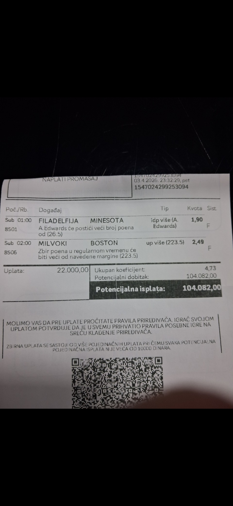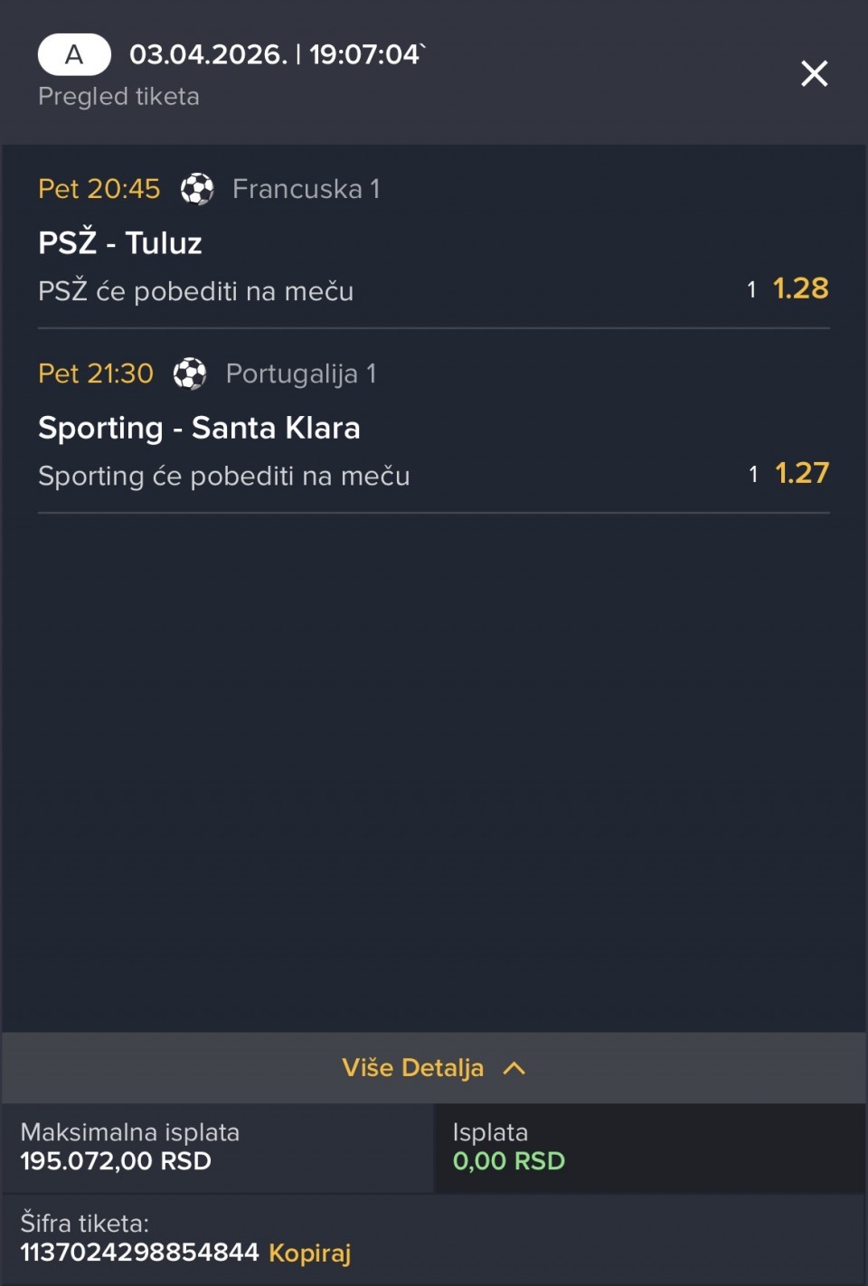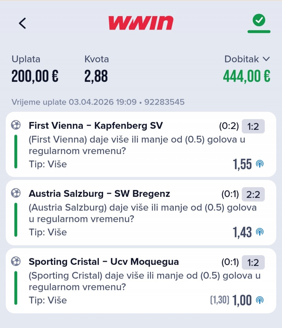 03.04. ❌ @1.90 (1. korak)