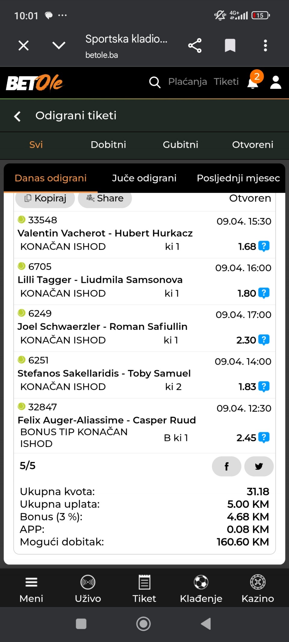 Kvote iz meridiana. Srecno ko prati!