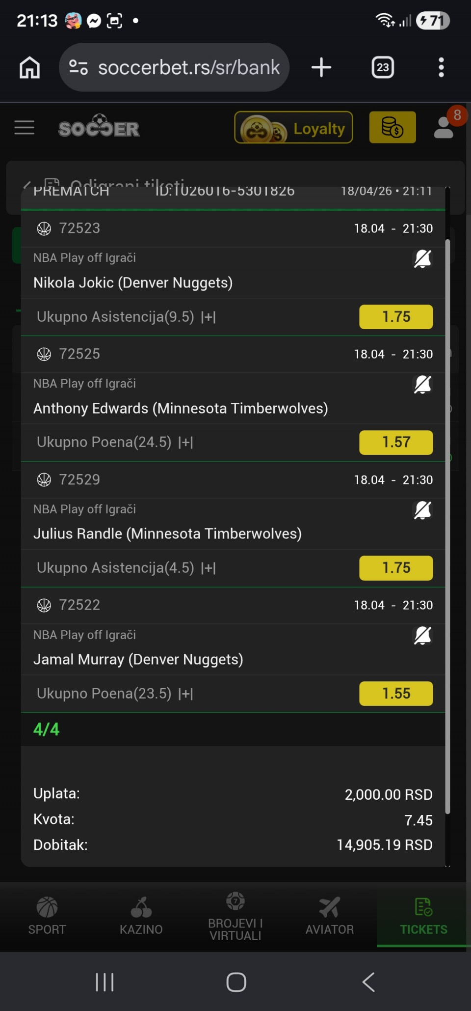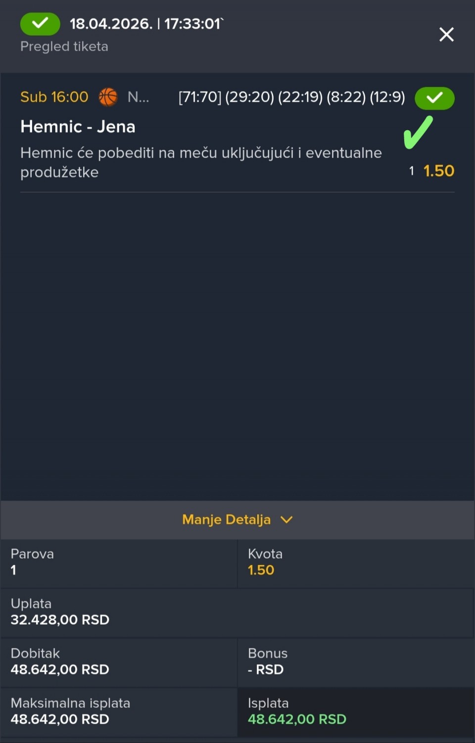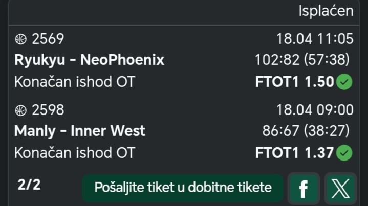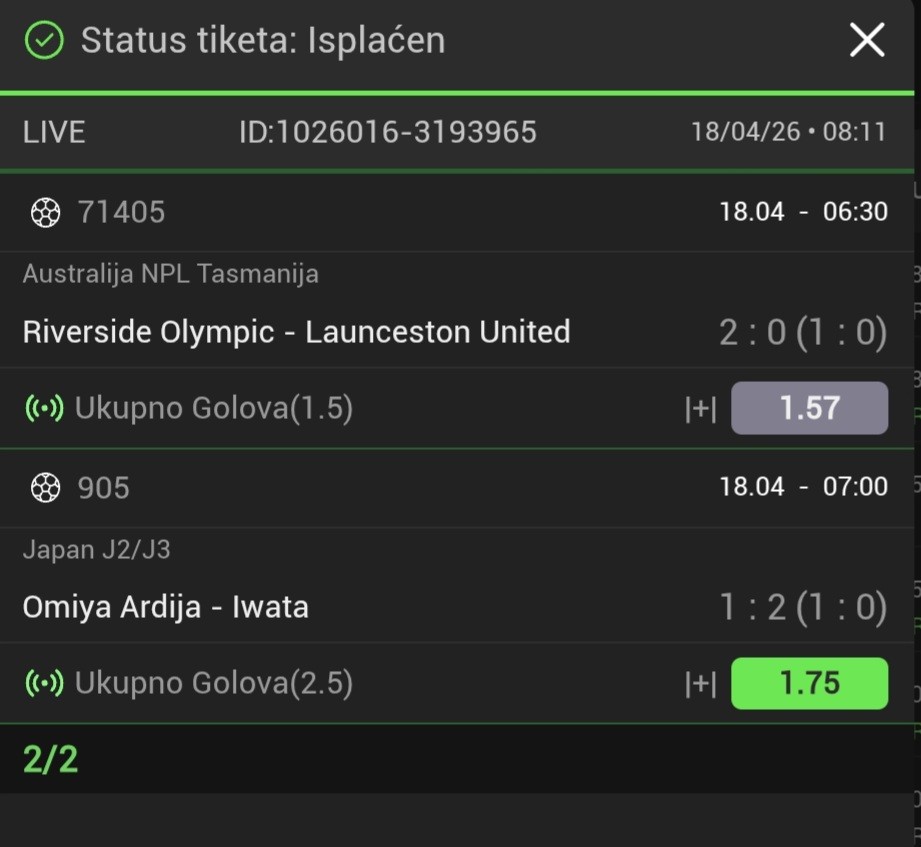 Tip: 1, kvota: 2.55, sigurnost: 8
