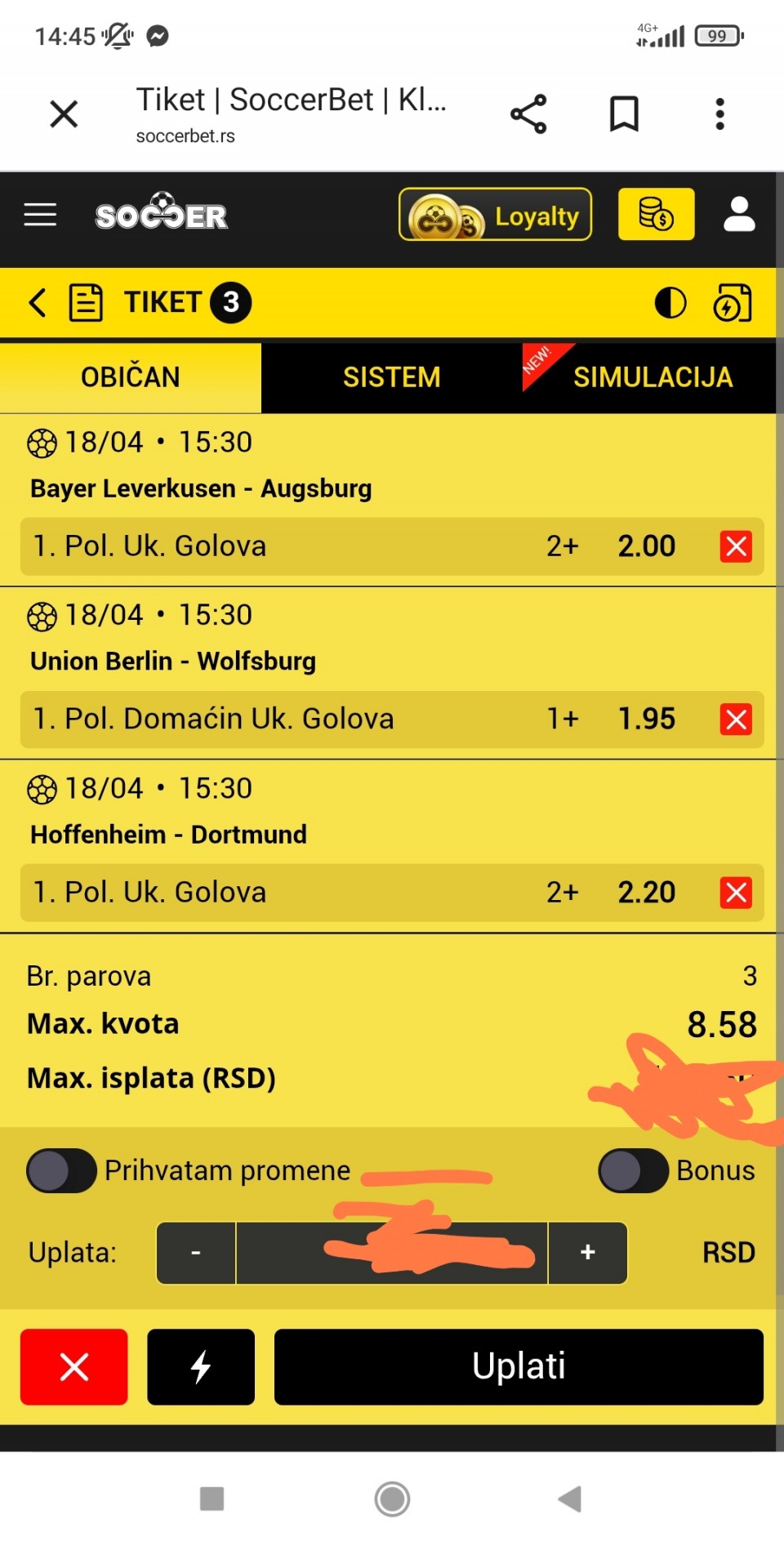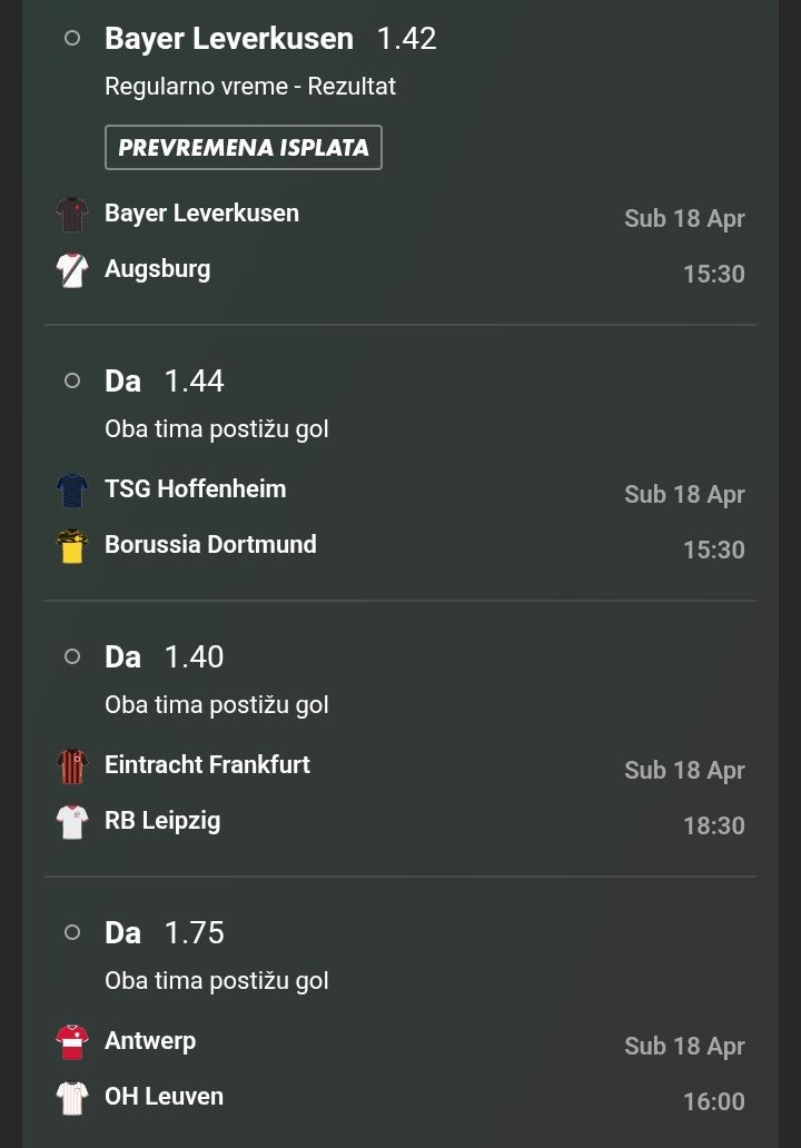 Leverkusen Augsburg...Ev jedan tiket za danas pa ko hoce nek izvoli