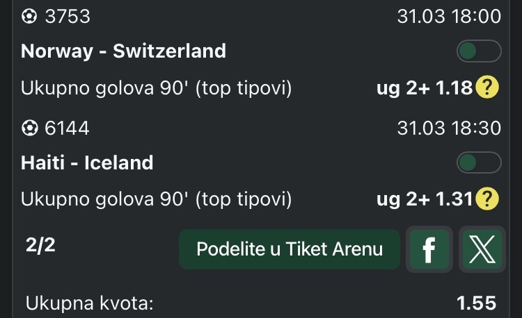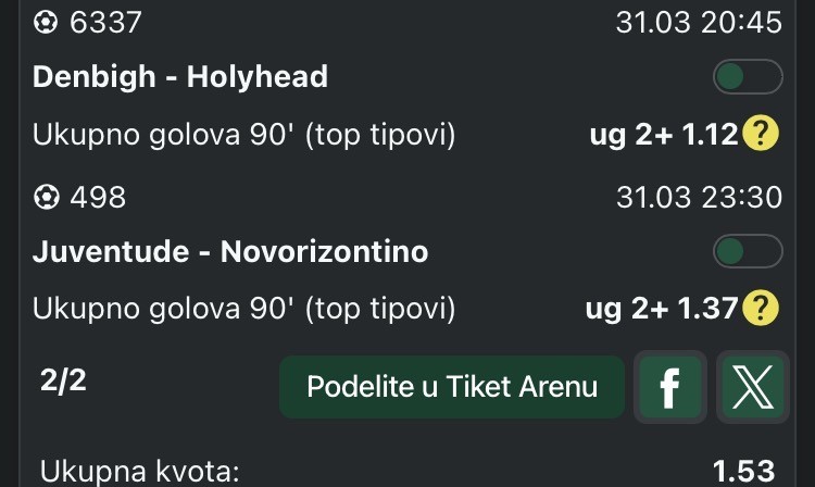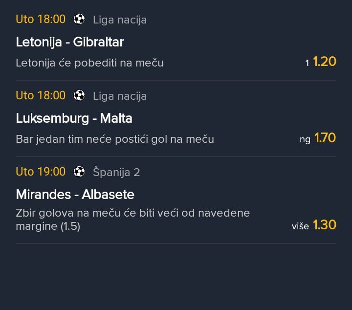 Treba mi pomoc prijatelja. Da li ovo vezati sve po kvoti malo preko 3, ili pak spojiti dva tipa sa malo jacim kvotama da moze kvotu 3? 🤔 Hvala unapred i ziveli! 💪