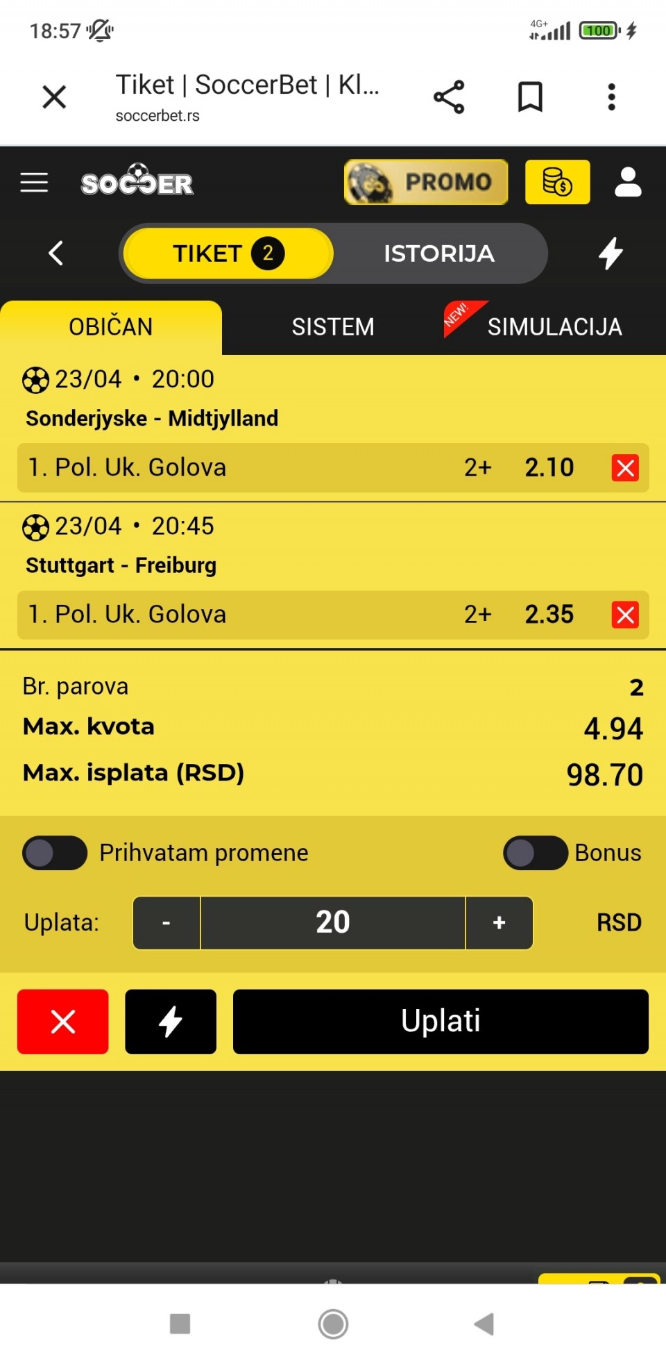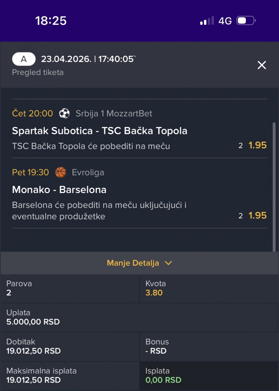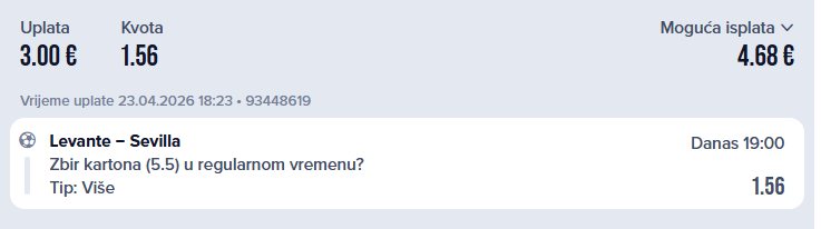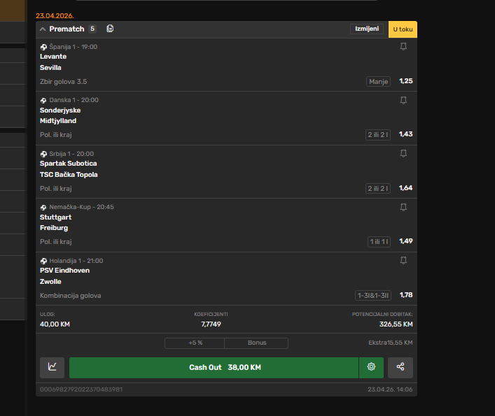 Probaću da do kraja meseca svaki dan vijam kvotu 1.40 - 1.50 za po moje standarde jak ulog, pa da vidim kakvo će mi stanje biti prvog maja.