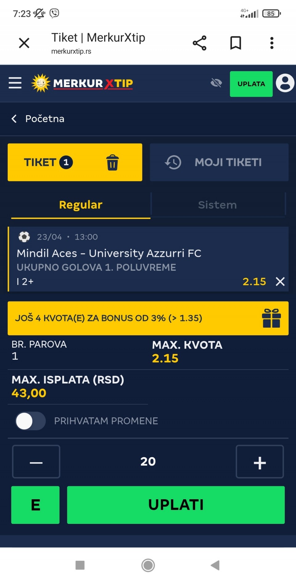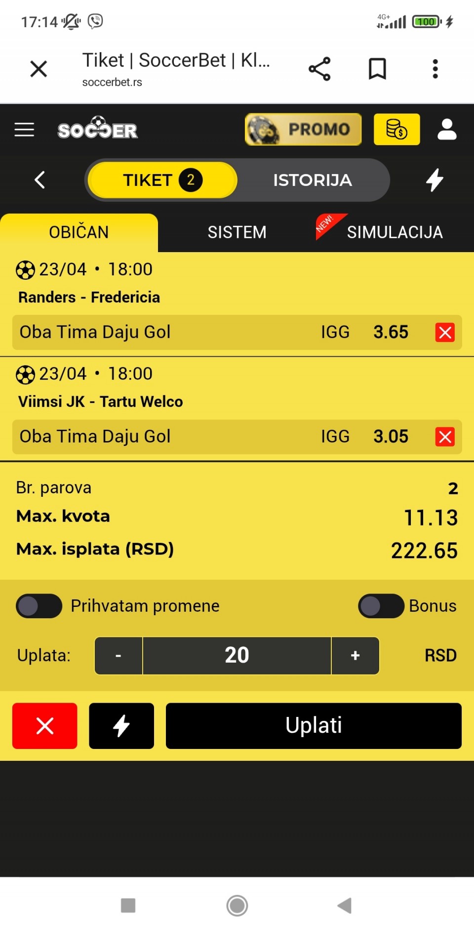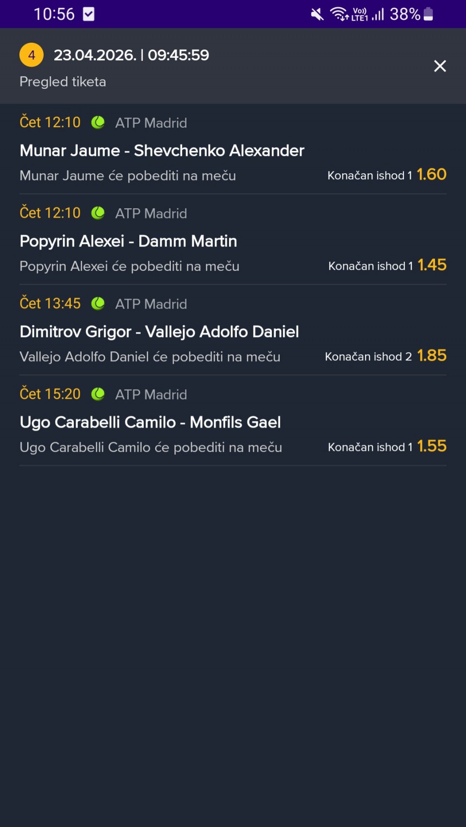 Probaću da do kraja meseca svaki dan vijam kvotu 1.40 - 1.50 za po moje standarde jak ulog, pa da vidim kakvo će mi stanje biti prvog maja.