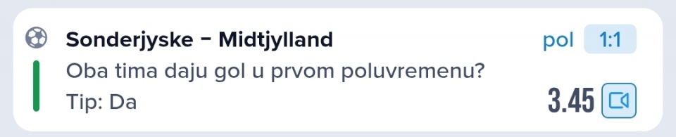 Tačan rezultat ko hoće 1:0 ili 2:0