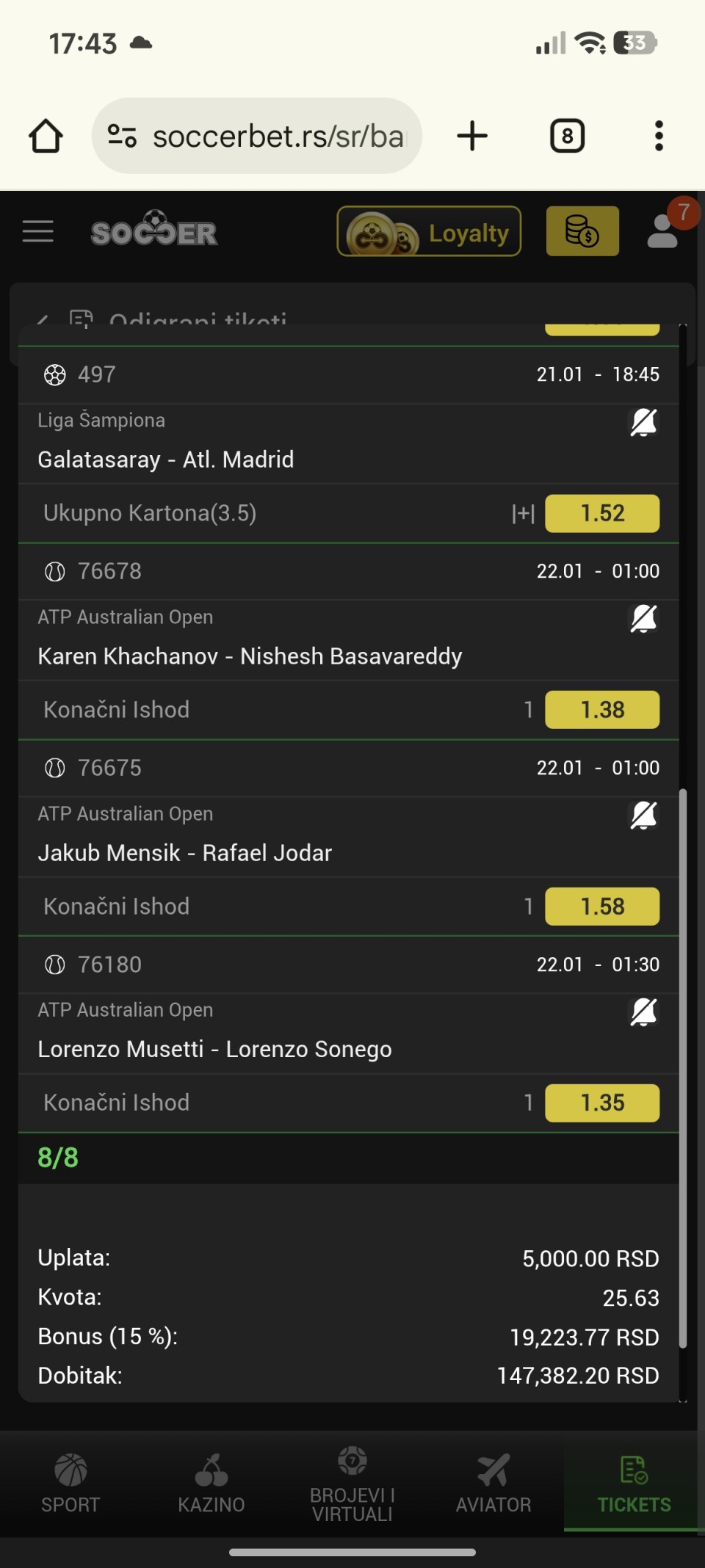 | Torento33 (1) | (33/63) | 52.38% | 85.80 | |