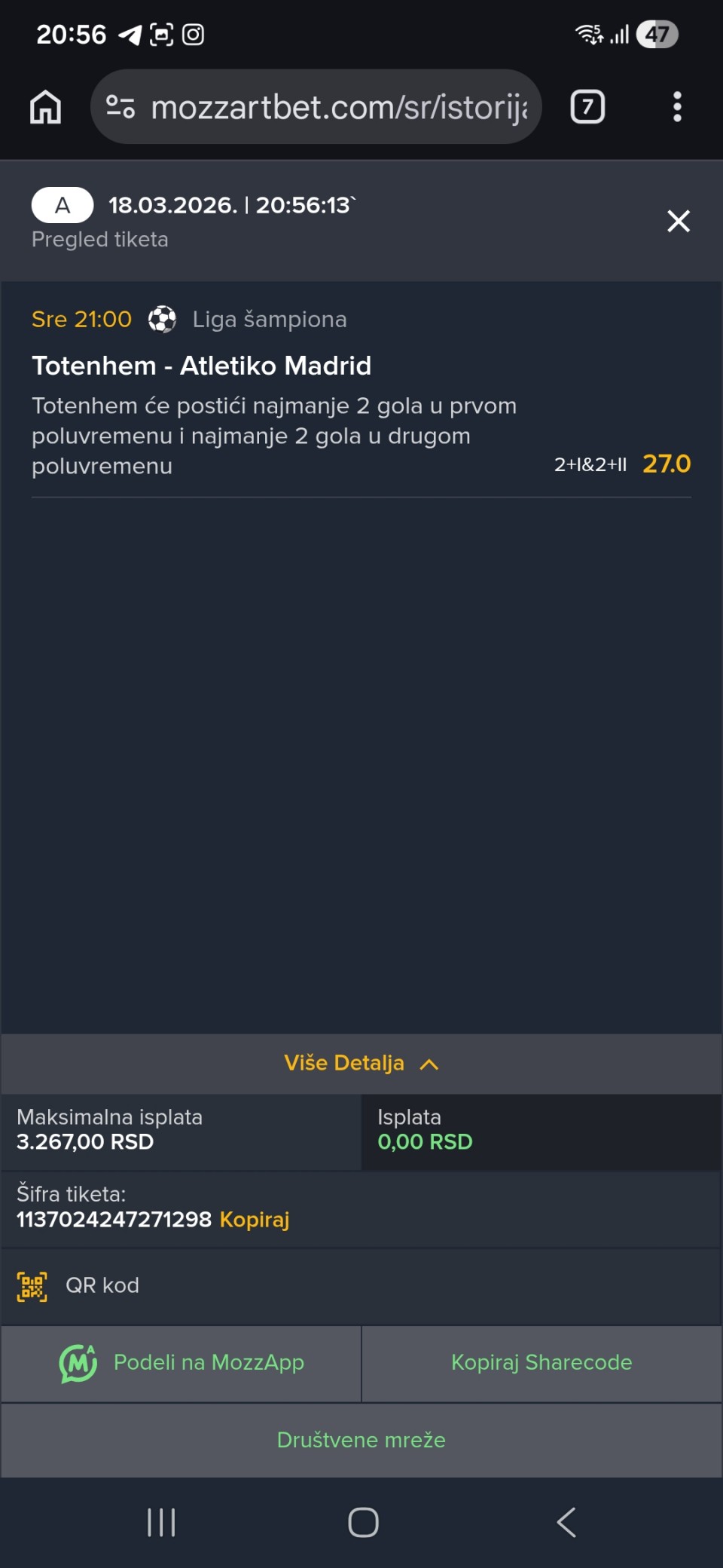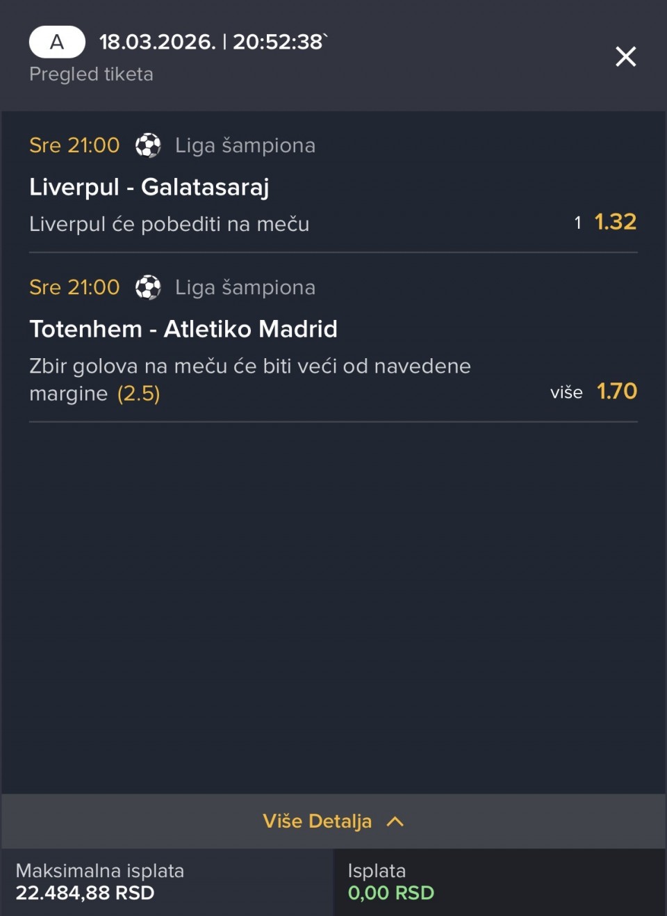 Danas jedan singl od mene 18:00 kvote 3,80