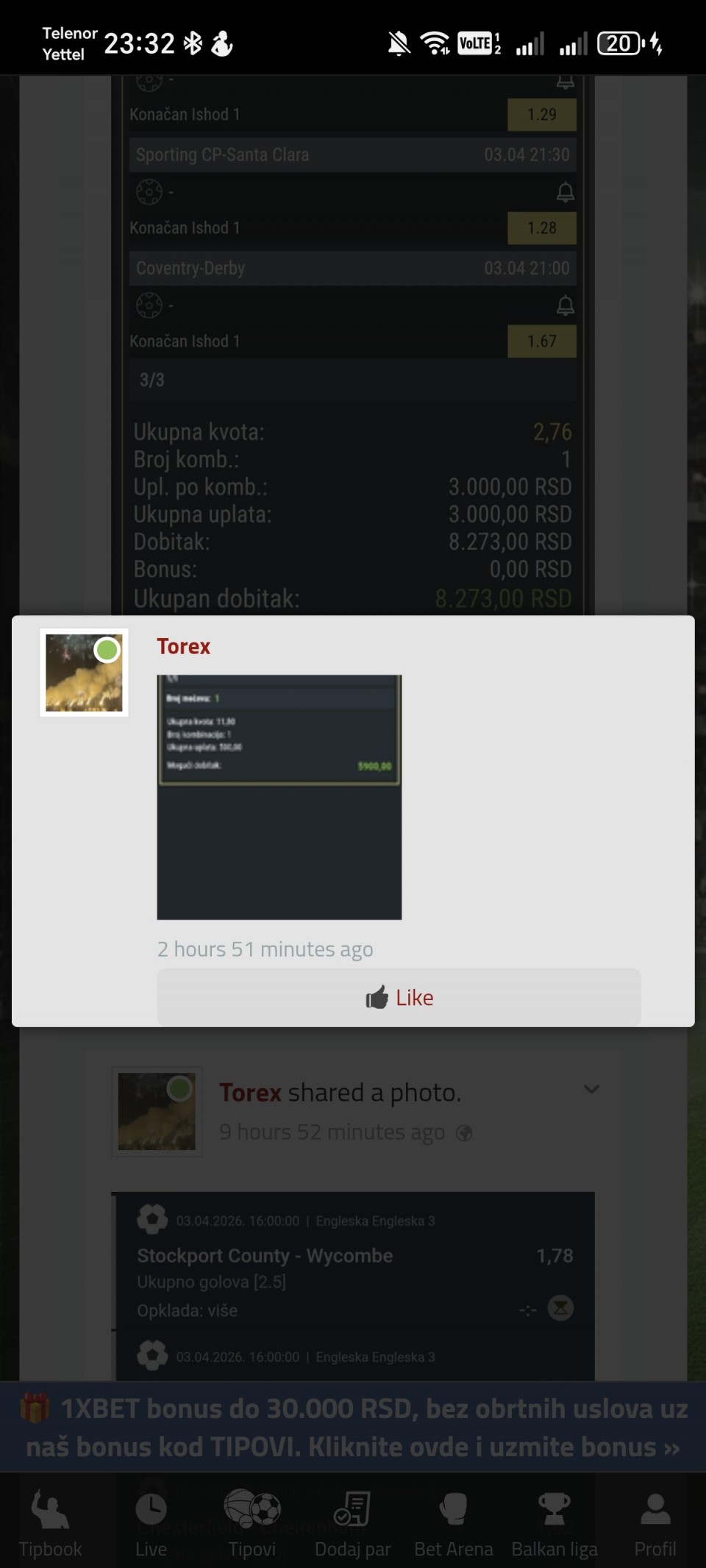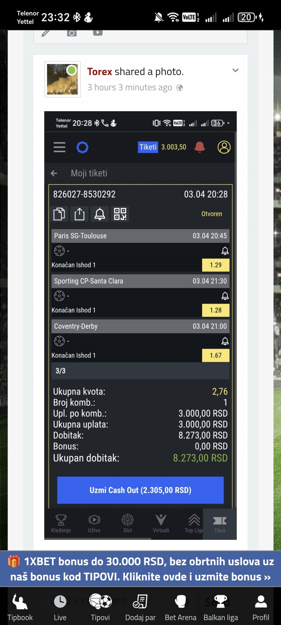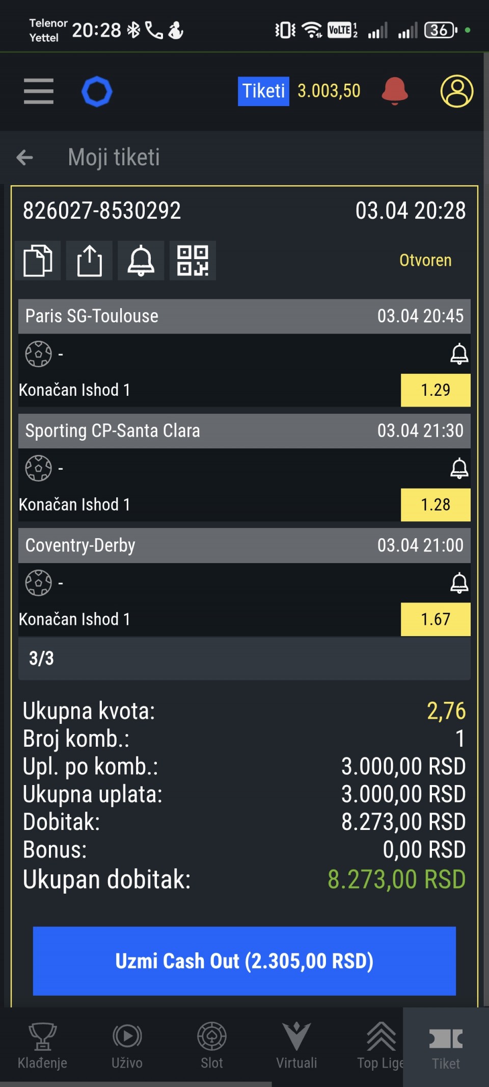 02.04. ✅ @2.36 (1. korak) +1.360