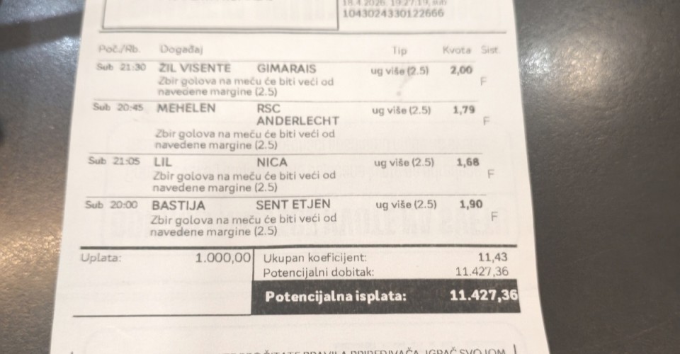 niko42: Mada treba pustiti ove sto blate trud ostalim tipsterima da im na zadnjem danu tekuceg meseca dodeliti crveni karton i i