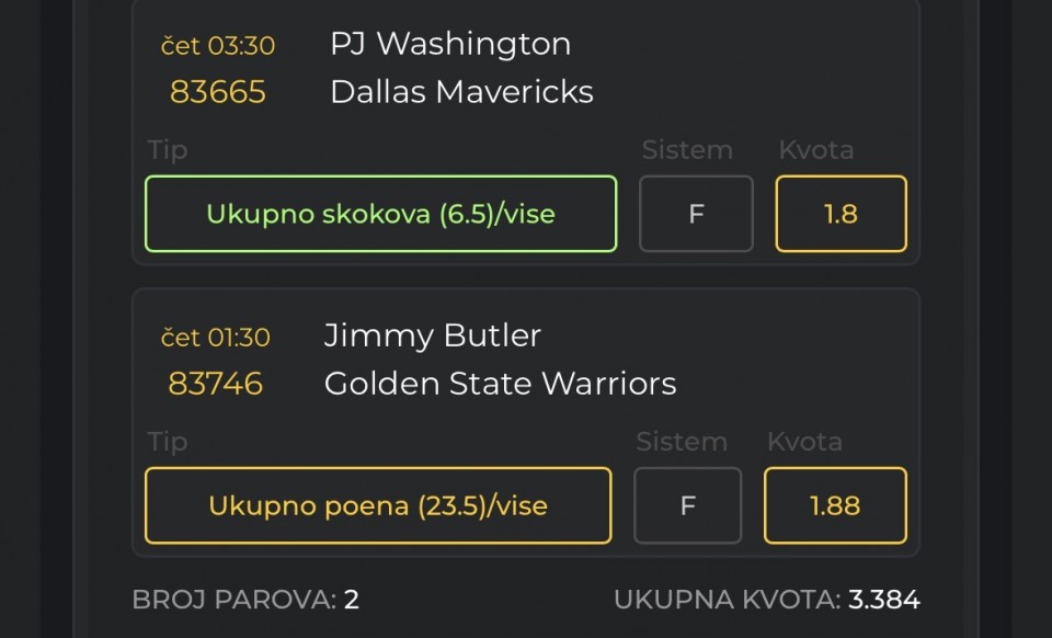 Filadelfija bez Adema Bone, Pola Dzordza, Oubrea, i Embiida, ponovo ocekujem da glavni igraci budu Maxey i Grimes, prosli put nas je zeznuo za 1 poen skok asistenciju bilo sta od ta 3, uz izuzetno ogranicene sanse za skokove (3) i asistencije (5), veceras protiv skakacki slabije ekipe toronta, mislim da je usage tu i da ce ovo doci veceras!