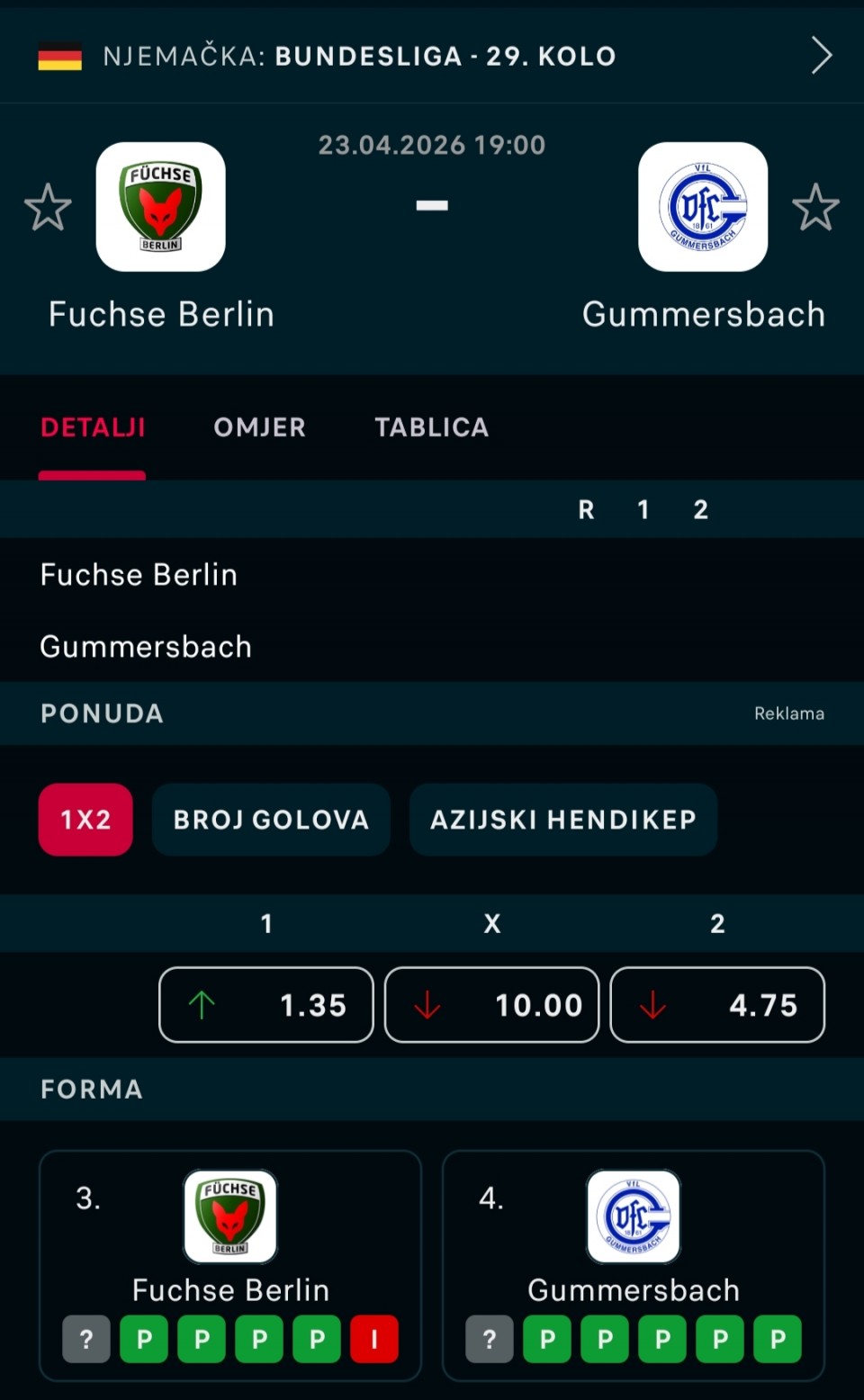 Tip: 1X, kvota: 1.58, sigurnost: 8