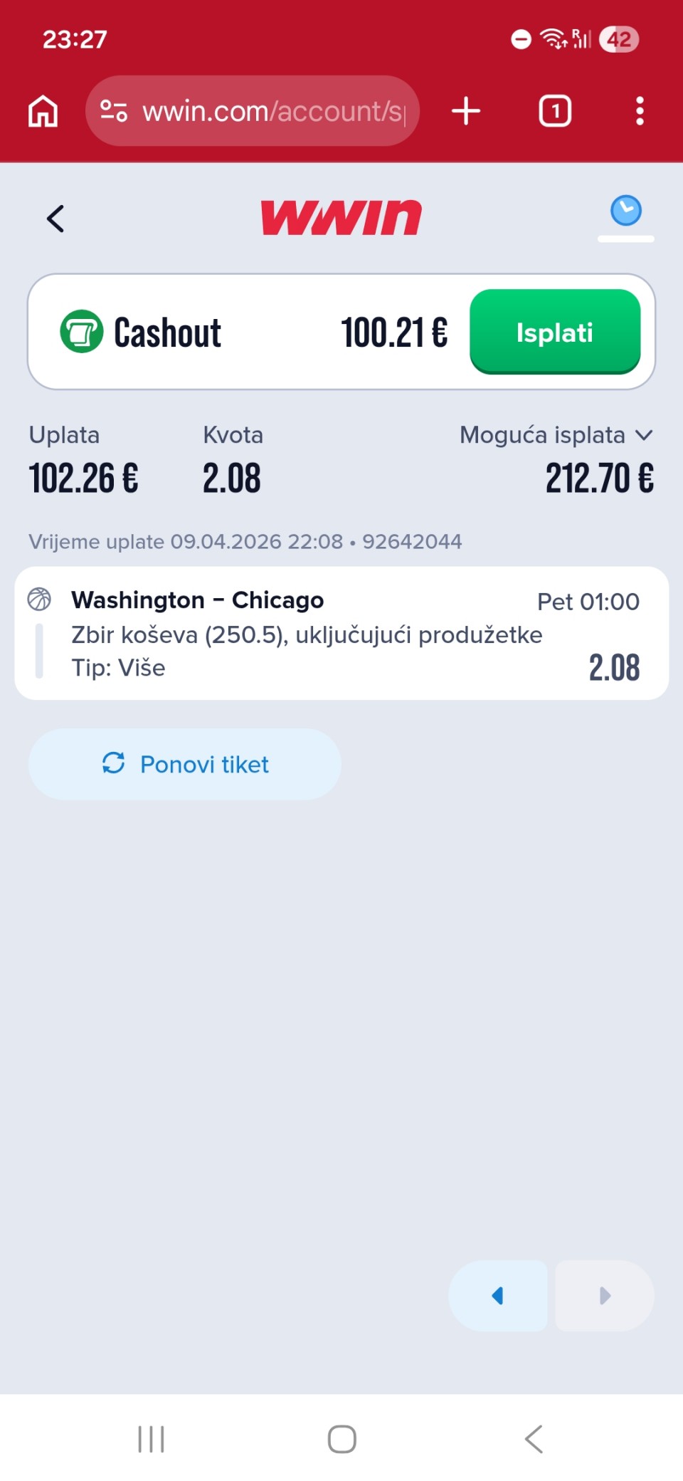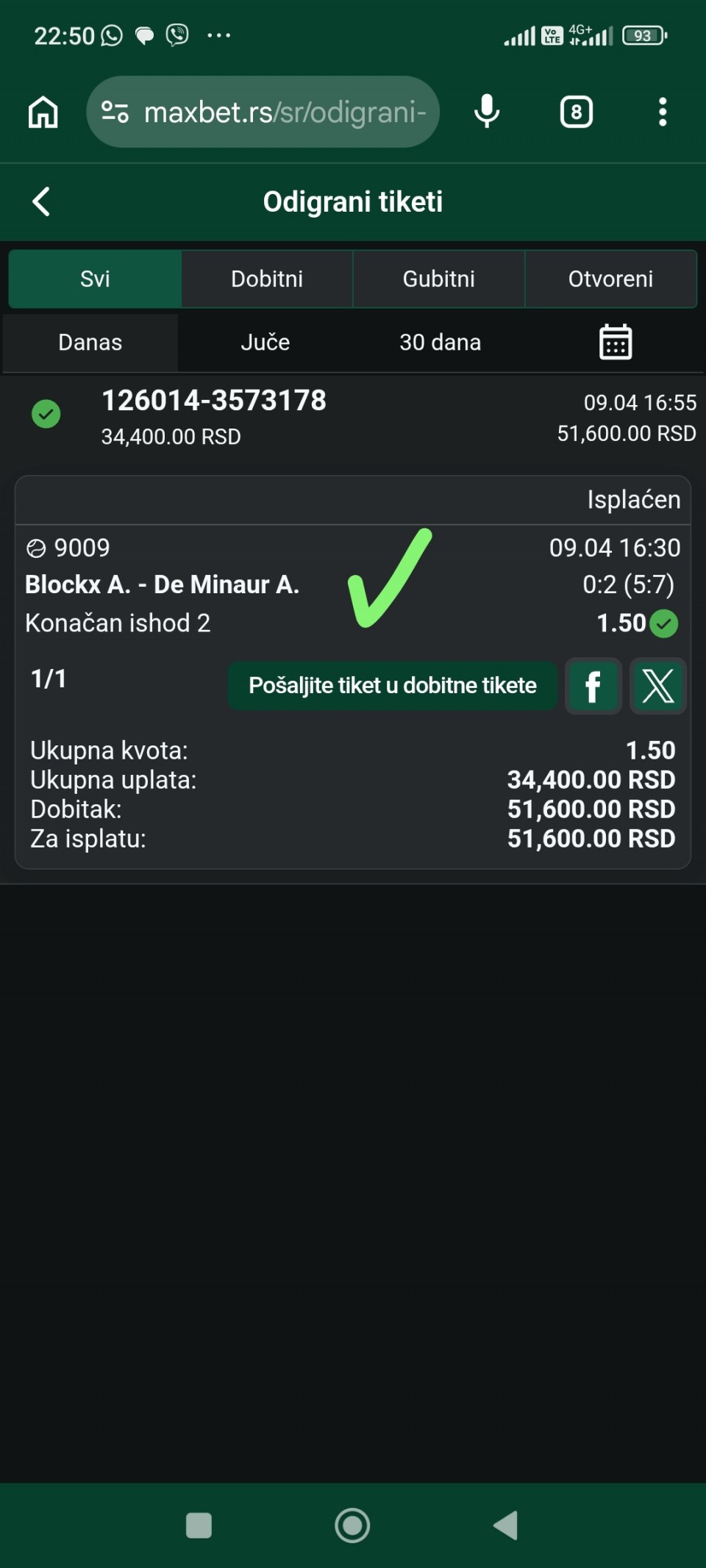 Tip: UP+ (183.5), kvota: 1.75, sigurnost: 8