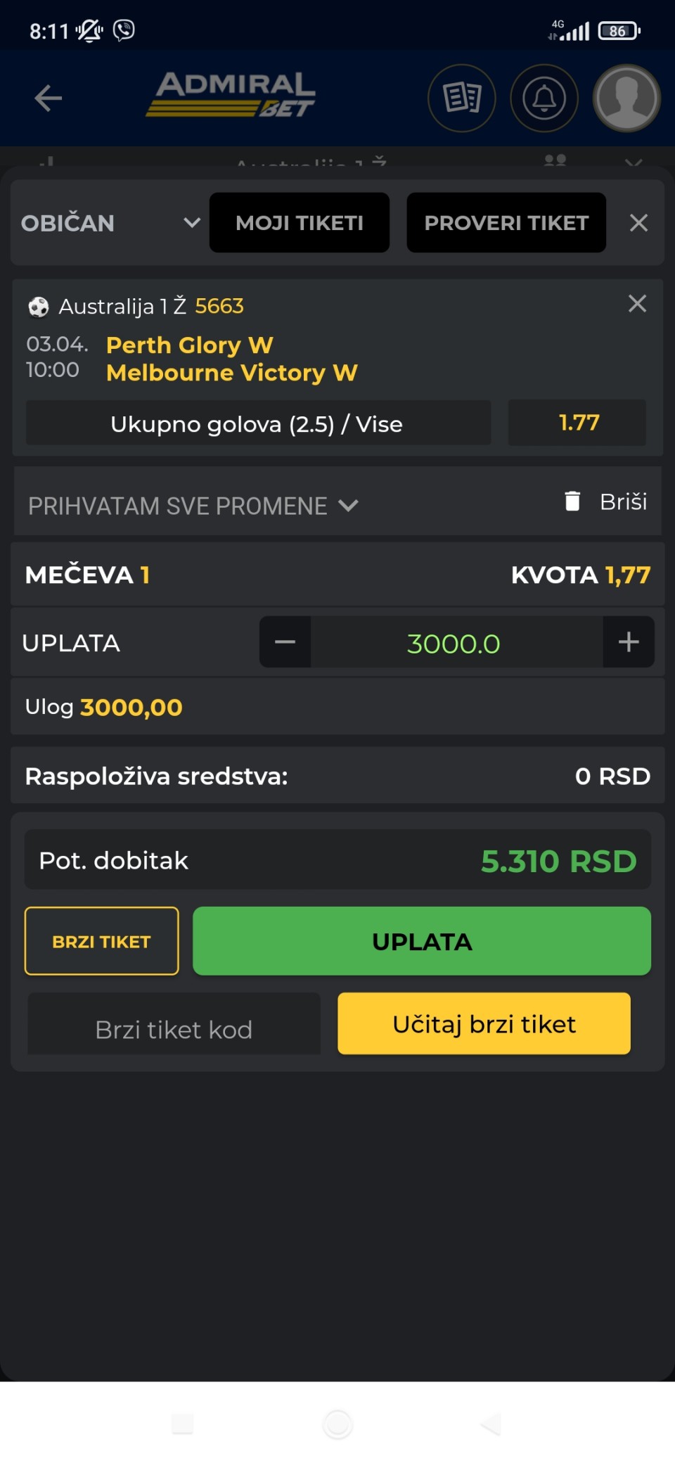 Tip: I1+&2+, kvota: 1.61, sigurnost: 8