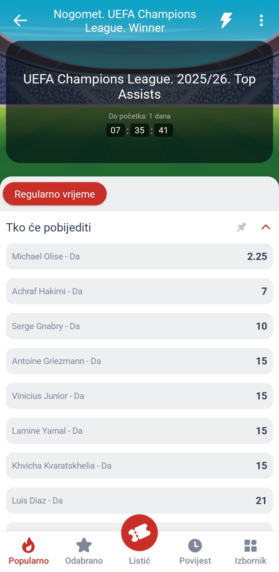 Tip: 1, kvota: 1.21, sigurnost: 8