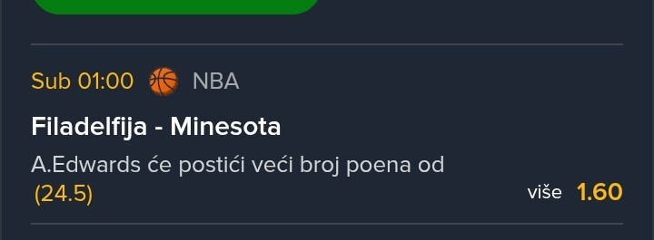 Dosunmu polahko, ali sigurno preuzima glavnu riječ uz Edwardsa i Randlea u Minnesoti kojoj nikako ne ide u zadnje vrijeme. U tom sivilu nekako se najkonstantiji pokazao upravo Ayo koji je prije par večeri imao i triple double. Jako zahvalan bek koji sve radi na parketu, mnogo igra, a obzirom na važnost tekme za obe ekipe očekujem da će Embiid i Randle biti zauzeti čuvanjem jedan drugog i da će ostajati vise prostora za bekove, ali evo nisam smio Divicenca pa sam izabrao Dosunmua.