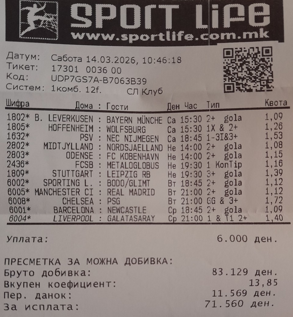 6 | 16:00 | Sheffield Wed - Ipswich | Gost preko 1.5 | 1.33