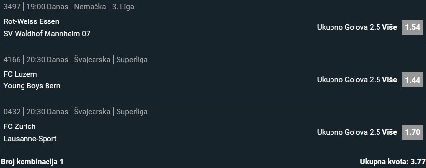 Ako imate neke predloge za sutra i...Nisam igrao kladionicu nekih 10ak dana i danas uđem i slučajno bacim pogled na nalog kad ono kladionica dala bonus od čak 700e kojeg moram iskoristiti do petka. Uslov je 3 tekme sa minimalnom kvotom 1,50.