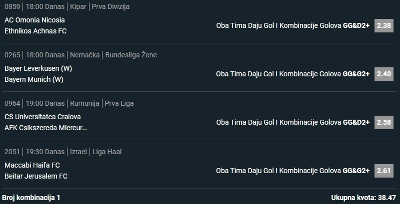 Како сте људи? Нисам дуго писао. Шта ви мислите? Да ли је паметно јурити X на предстојећем Афричком првенству удвостручујући улог. Био сам веома уплашен што је 2023. у групној фази било чак 16 нерешених утакмица. Али у нокаут фази у 15 ниједан...Како сте људи? Нисам дуго писао. Шта ви мислите? Да ли је паметно јурити X на предстојећем Афричком првенству удвостручујући улог. Био сам веома уплашен што је 2023. у групној фази било чак 16 нерешених утакмица. Али у нокаут фази у 15 ниједан нерешен резултат, што је застрашујуће и чудно. Молим вас, реците ми шта мислите. Мој буџет је око 2000€, а мој почетни улог је 2,5€ данас на Мароко, а сутра 5€ на следећи. Show more