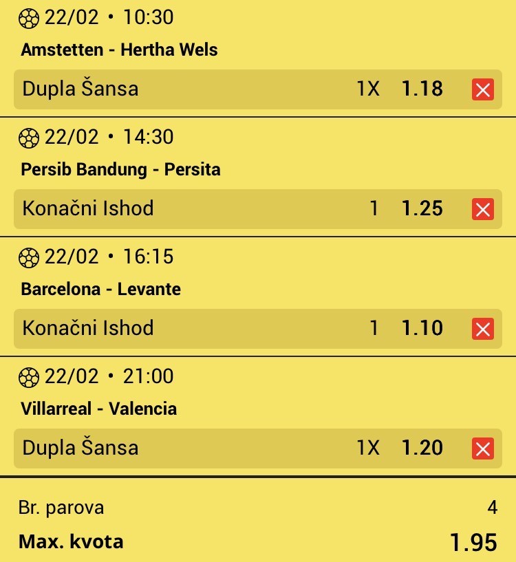 22.02. Kvota: 2.53 → drugi korak