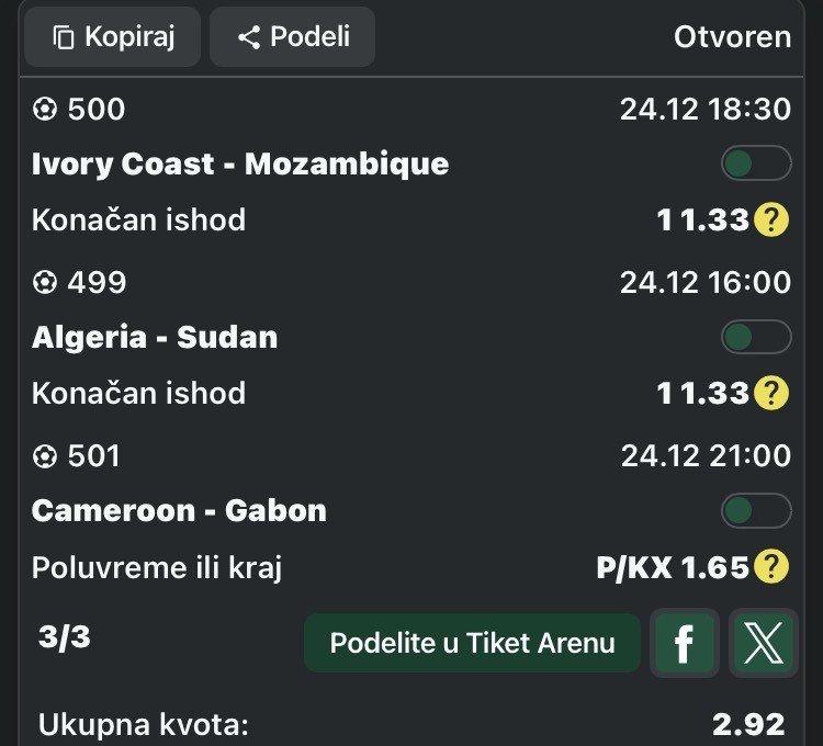 Na poslednjoj utakmici za danas sam se odlucio za ovaj tip iz vise razloga. Iako je istorija i sve fudbalsko na strani Kameruna, ovo prvenstvo igraju bez veoma bitnih igraca. Ocekujem tvrd mec, bez puno sansi, jer na obe strane ocekujem odsustvo realizacije i kvaliteta u poslednjoj fazi napada. Licno sam probao i singl tr 0:0 @ 8.00