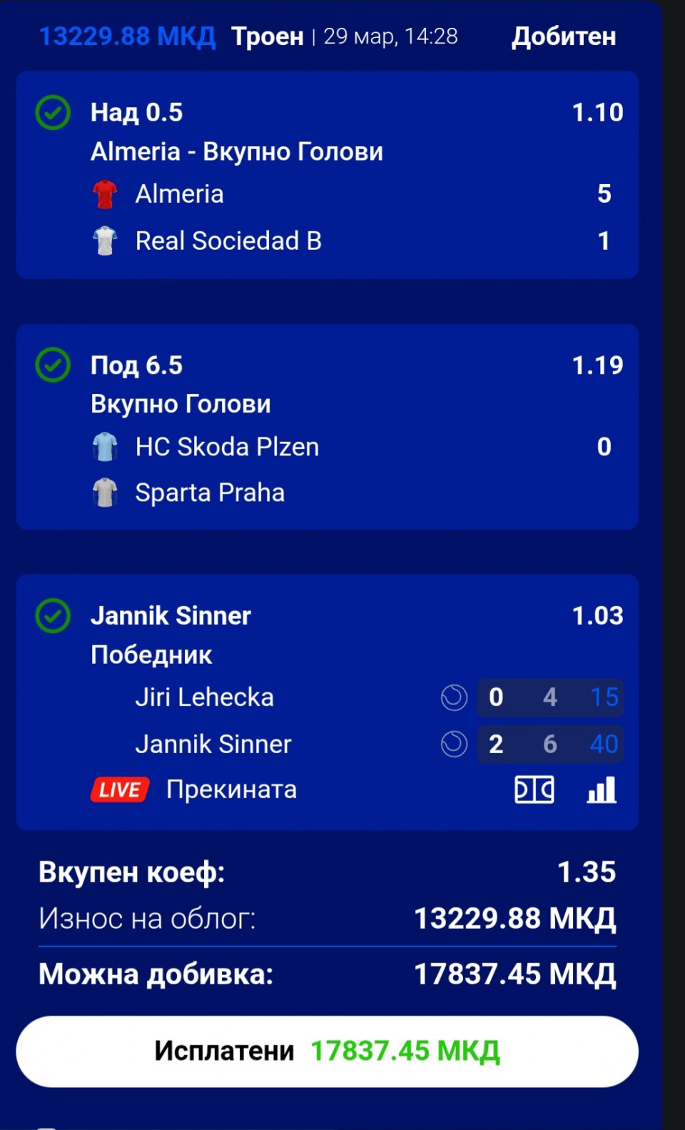 7/9 sto se tiče hokej predloga, imali smo sva pada jako glupa ovo ostalo prolazi a ono najvažnije info tipovi sve jedan je prošao