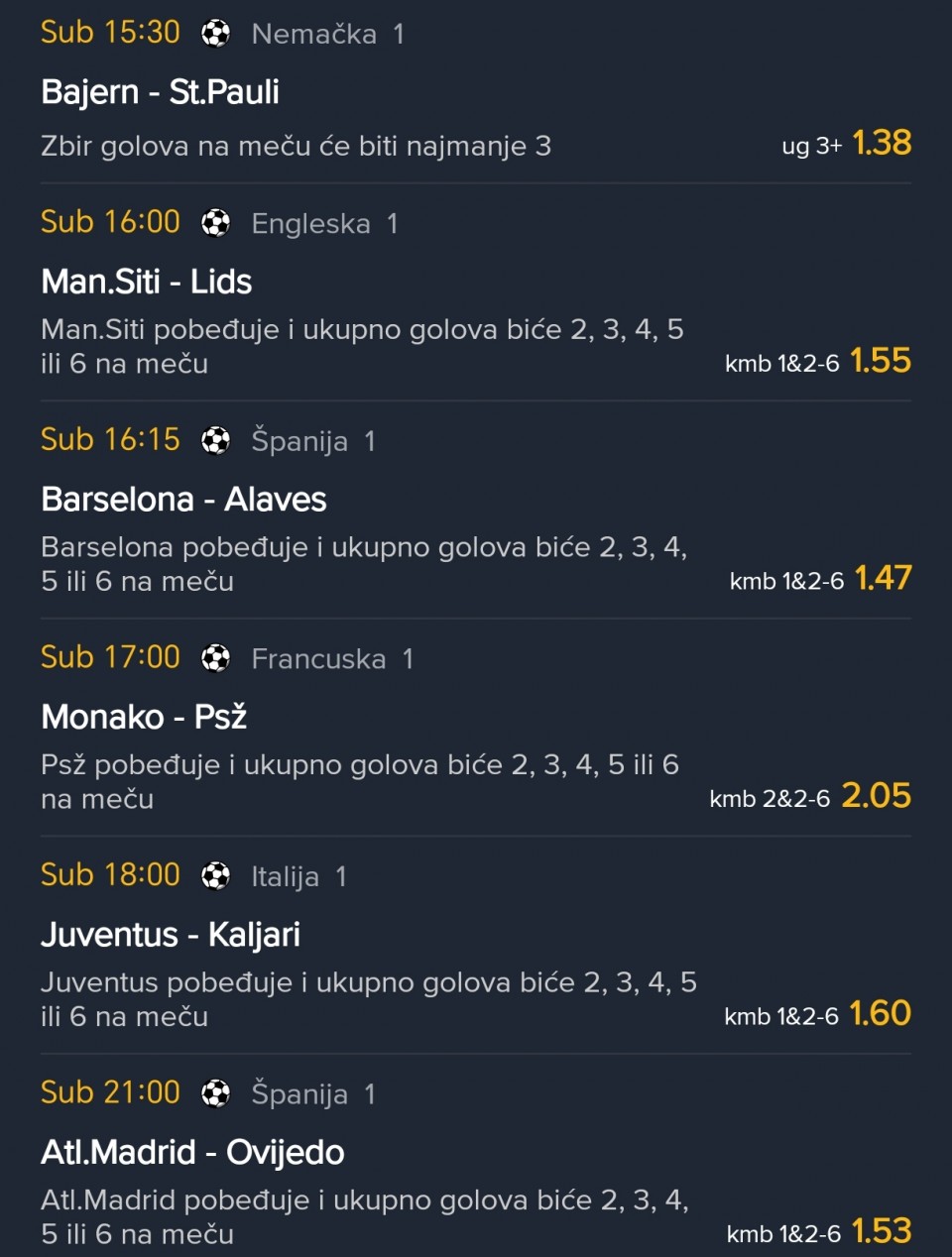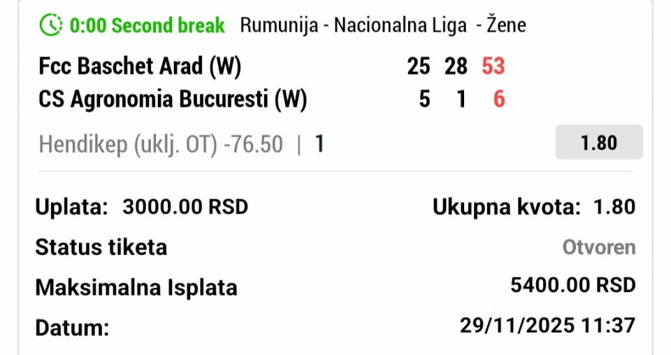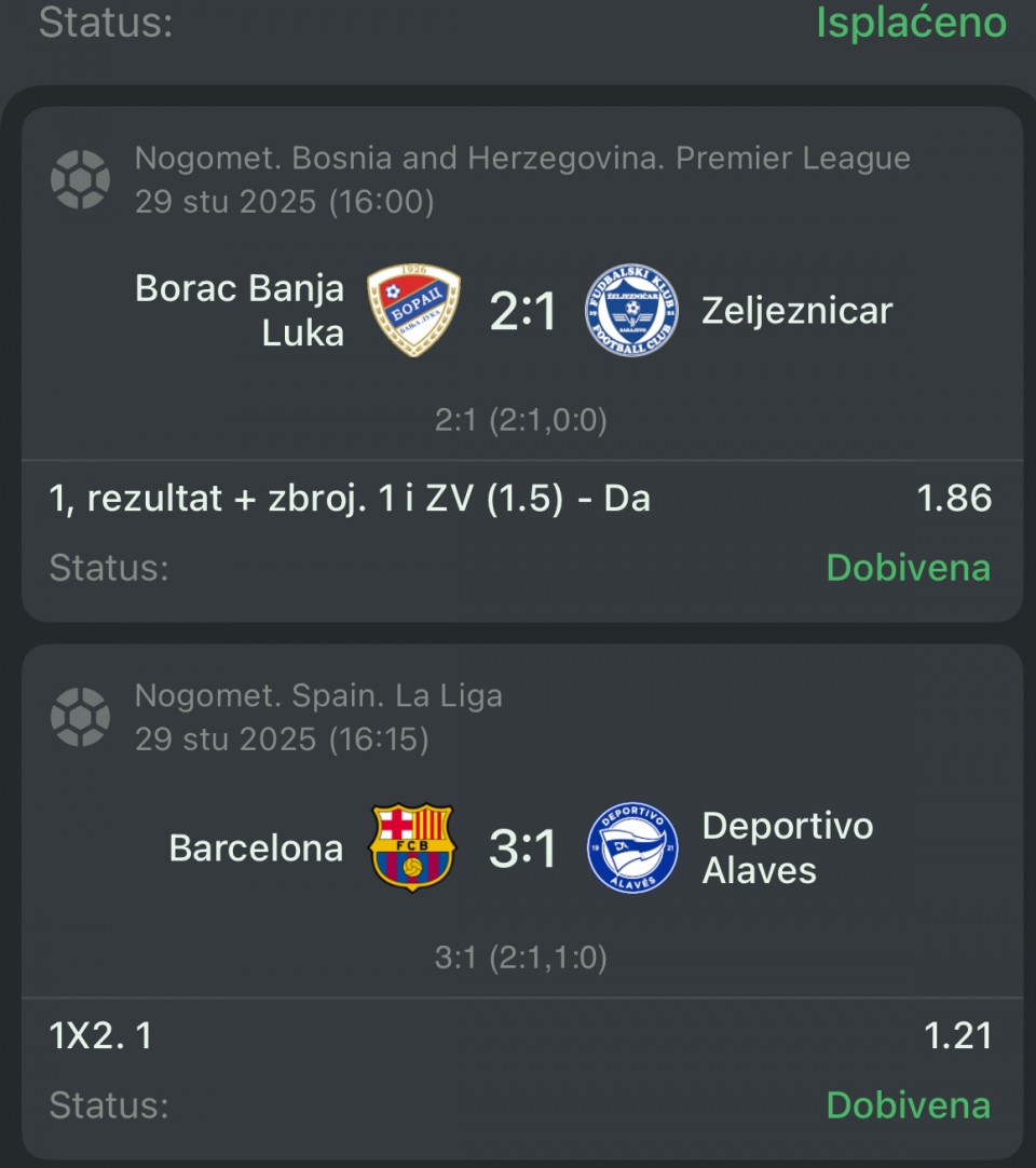 evo ovaj tiket @ 2.05 vam je prošao