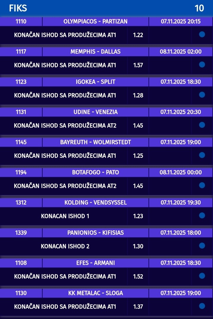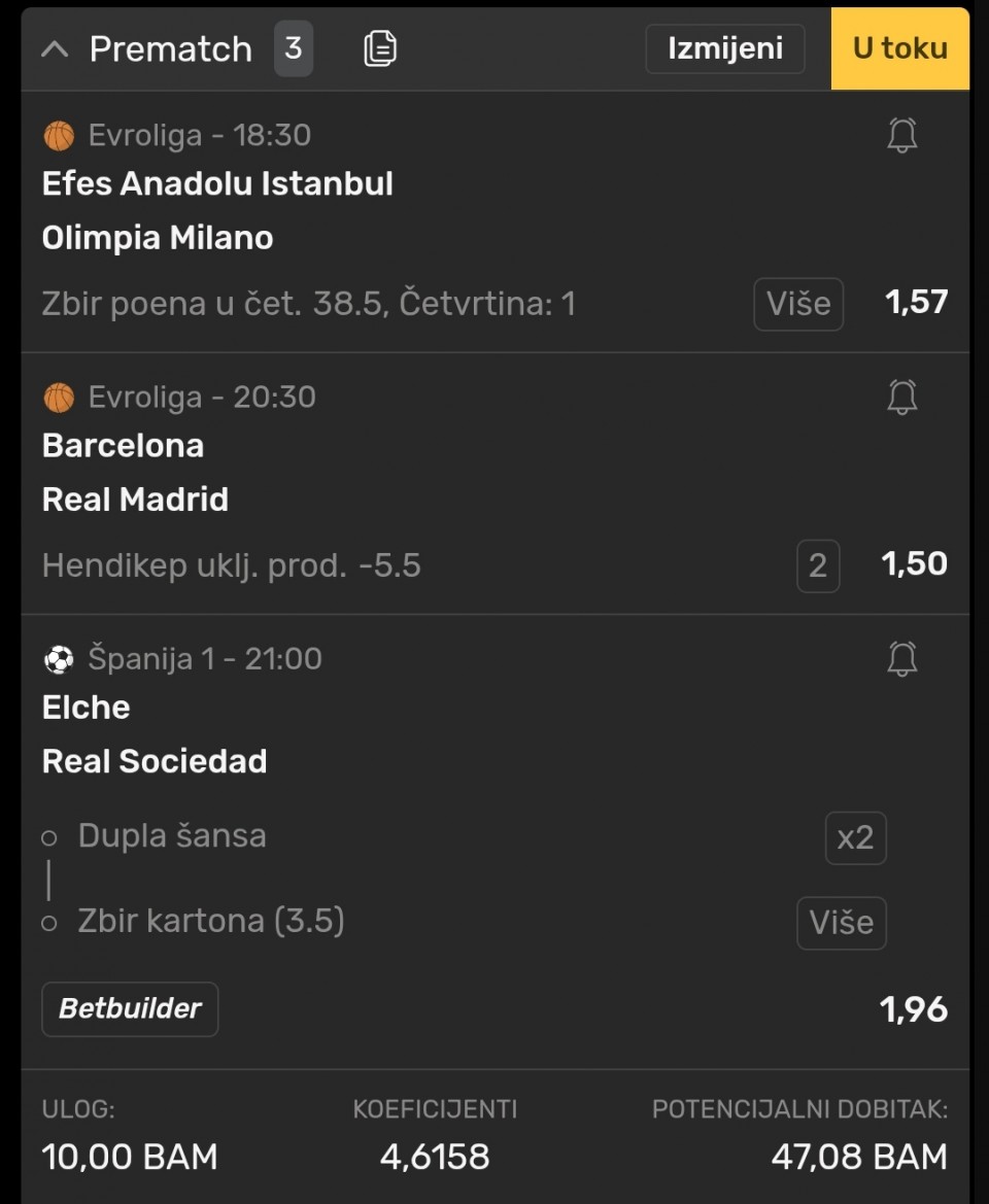 Predlozi za tiket EL Osmani 9.5+ alt M. Lo 3.5+ ast Vezenkov 24.5- alt Calates 6.5- to sam ja odigrao, ako slucajno iskoci neki ingo pred neki mec pisem u kom.
