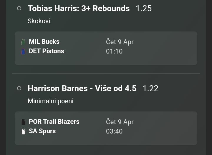 Meč Spursi-Blazersi meni najzanimljiviji noćas. Blazersi odlično igraju, sve više egal tekmi, a posljednja je bio produžetak sa Nuggetsima. Očekujem da će pružiti baš hrabar otpor Spursima noćas koje ako ne bude služio šut mogu i izgubiti. Naime Spursi noćas bez 2 glavna igrača, nosioca ekipe, a to su Castle i Wemby. U njihovom odsustvu očekuje se da potegnu Vassel, Harper, Fox, Johnson i ostatak družine, ali imaju jako visoke granice i nisam smio nikoga od njih uzeti jer Spursi znaju jako dobro raspodjeliti poene, pobijediti utakmicu, zabiti 120+ koseva, a samo 1 igrač dođe OVER!