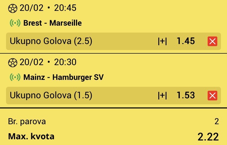 Pobeda domaćina po kvoti 1.87