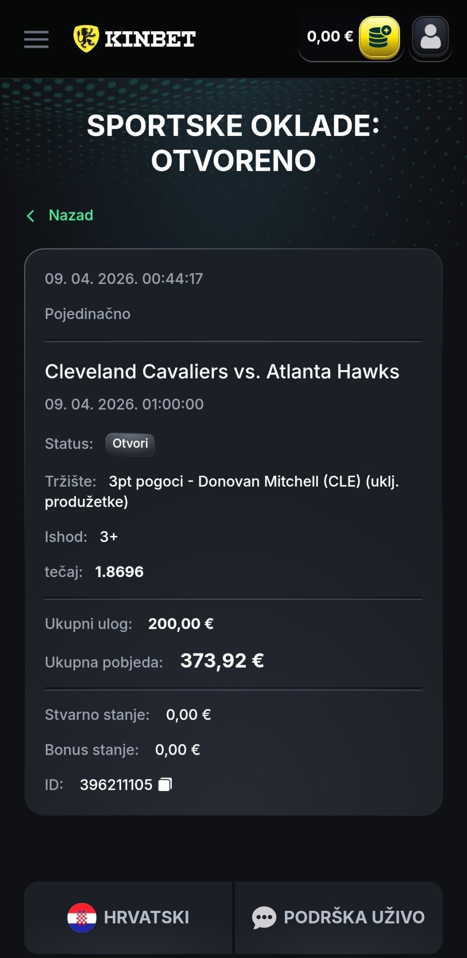Tip: UP+ (183.5), kvota: 1.75, sigurnost: 8