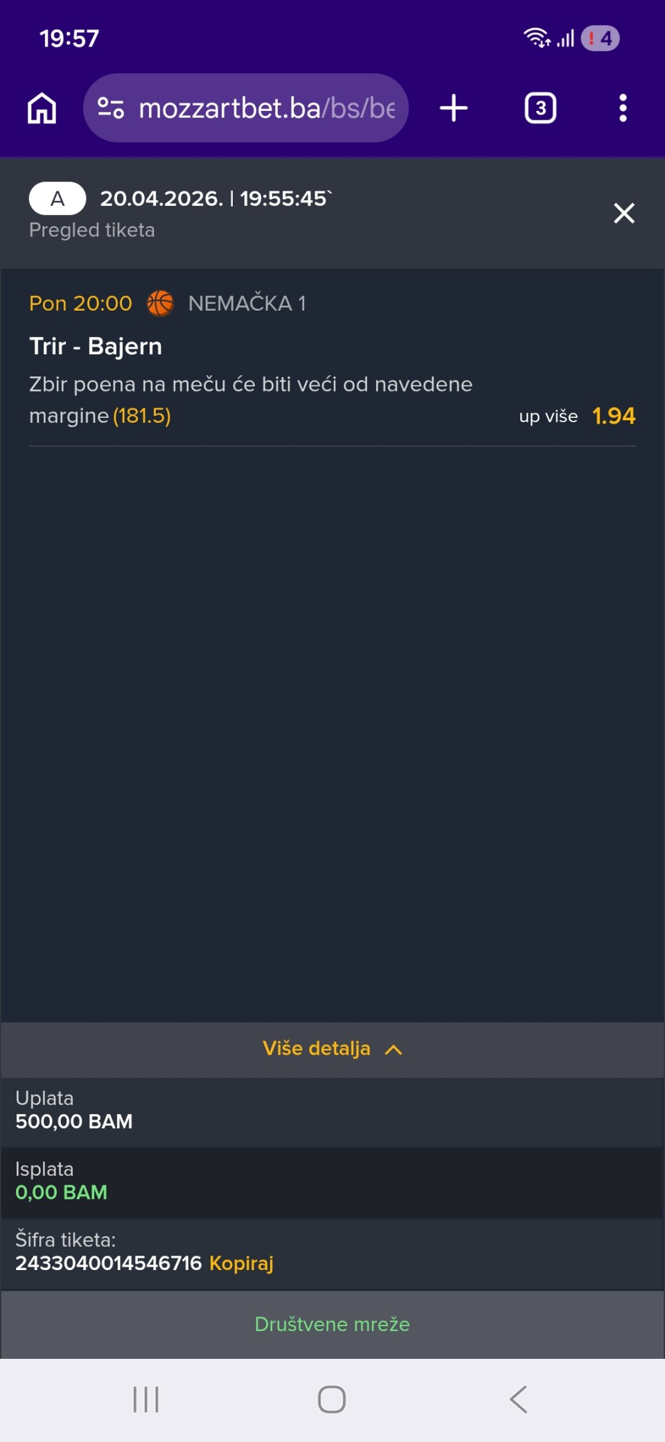 LiveBet - nova live betting igra je ovde! Upravo smo pokrenuli LiveBet - besplatnu tipster platformu gde možeš da igraš live tikete na mečevima koji su u toku, bez pravog novca. Sve je u test fazi, svakog sata dobijate 20 besplatnih kredita ako ostanete bez njih, tako da nema razloga da ne probate. Odigrani tiketi se prikazuju na početnoj stranici, a ukoliko bude interesovanja, organizujemo mesečno takmičenje u LiveBetu. Nađeš bag ili imaš predlog? Prijavi nam, svaki feedback direktno utiče na bolju skriptu. Klikni ovde
