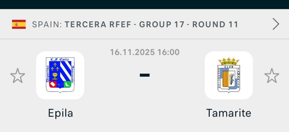 Izvinjavam se zbog spama. Ako okacim u komentaru. Nilo nece gledati. Imaju zanimljiv niz. Sezone 20/21. Igrali su na kraju sezone gubitnicku ligu i 4 boda je uzeo Epila. Sezona 22/23 Tamarite uzima 4 boda. Sezona 23/24. 3 za 3. 24/25 ponovo 3 za 3. Na vama je da izaberete sta bi danas trebalo da dodje. Prvi deo sezone i moze da se desi da uzimaju pobede domacini ili gosti i cak da podele X. Ja sam imao dosta srece ovih dana sa rezultatima pa cu igrati keca samo zbog kvote i nadati se da je red da domacin dobije. Prelaz je bio u korist Tamarite. Prosle sezone.