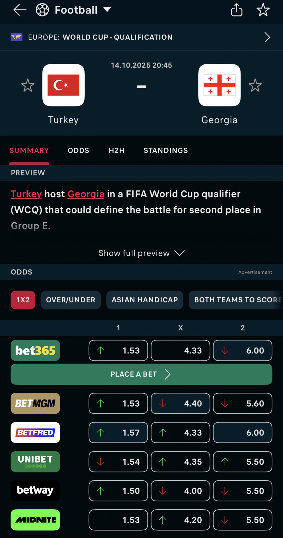 20:45 Turska - Gruzija KI 1 - Turska će pobijediti na meču