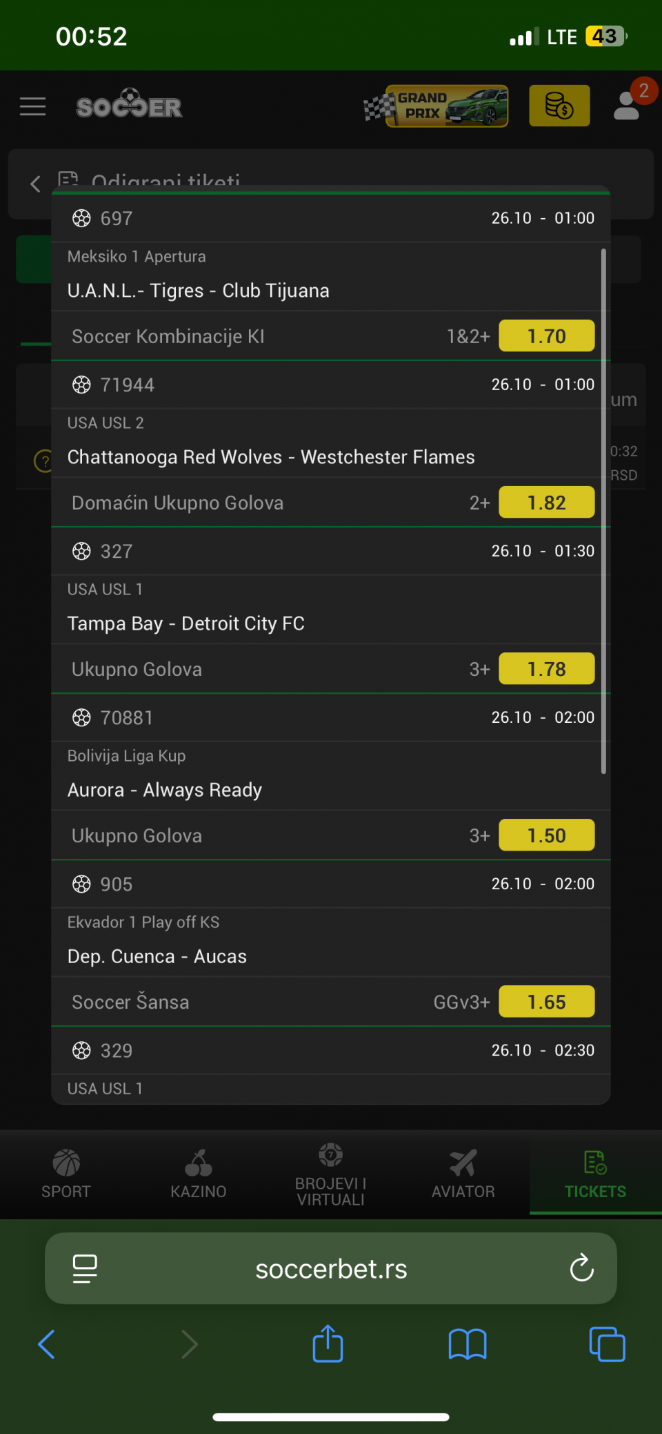 Mexico 2: Dorados -...Potencijalni prelazi nocni: