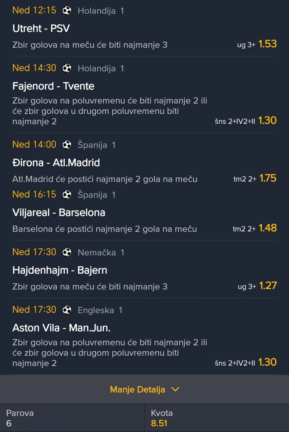 Ovo je nešto što...Drugi meč planiran za ovaj vikend ali me je kiks Osijeka juče dosta poremetio oko uloga, tako da ovog puta čupam minus od juče i jurim plus za ovu godinu.