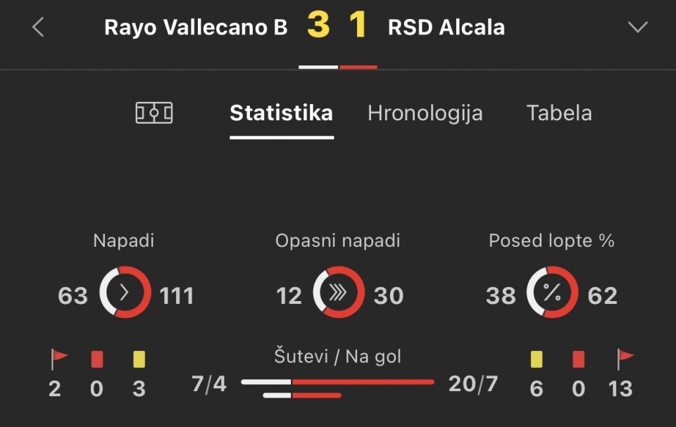 Ja ne znam ovo kako da nazovem. Ocigledno da ne ide u poslednje vreme, tacnije od proslog petka. 20 suta, 13 kornera sve u korist gostiju i...➡️ SPANIJA: Segunda RFEF - Group 5